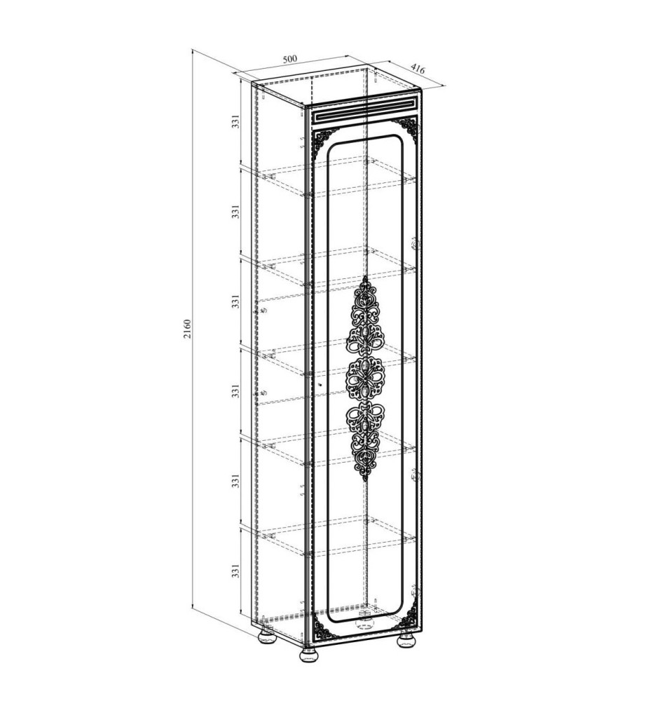 Материал корпуса/фасада: ЛДСП/МДФ с 3-D узором. Цвет корпуса/фасада: ваниль//ваниль. Размеры модуля (ш/г/в) в мм: 500х416х2160. Фурнитура: петли с доводчиками. Высота опоры 65 мм.