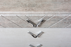 Фрезеровка на МДФ деталях и зеркалах подчеркивает форму металлических ручек, а декоративная прострочка на мягком изголовье и изножье кровати прострочкой повторяет общий мотив коллекции.
