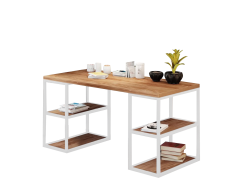 Каркас: профильная труба 20х20 мм.Прочное полимерно-порошковое покрытие черного, белого и серого цвета Дерево: массив сосны 20 мм, покрытое специальным маслом для мебели, цвета на выбор: бесцветный, белый, серый, махагон, орех, морёный дуб, черный, клён, черный графит, голубой графит, темное золото графит, золото графит.