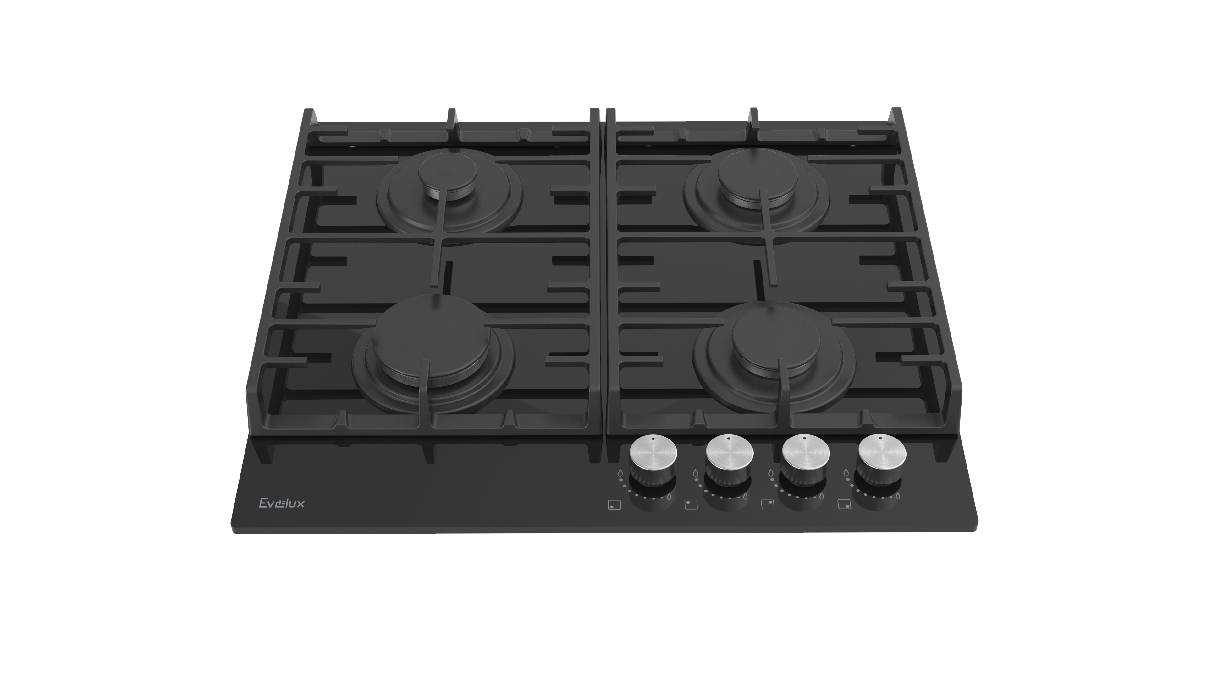 Поворотные регуляторы газовых варочных поверхностей Evelux выполнены из металла, что создает профессиональный стиль и препятствует их перегреву.
