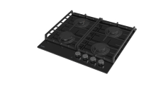 Характеристики: 4 конфорки: экономичная конфорка (0,9 кВт), 2 стандартных конфорки (2х1,7 кВт), экспресс-конфорка (2,9 кВт), газ-контроль, электроподжиг, черное высокопрочное закаленное стекло, чугунные решетки, поворотные переключатели, комплект форсунок-переходников на балонный газ.