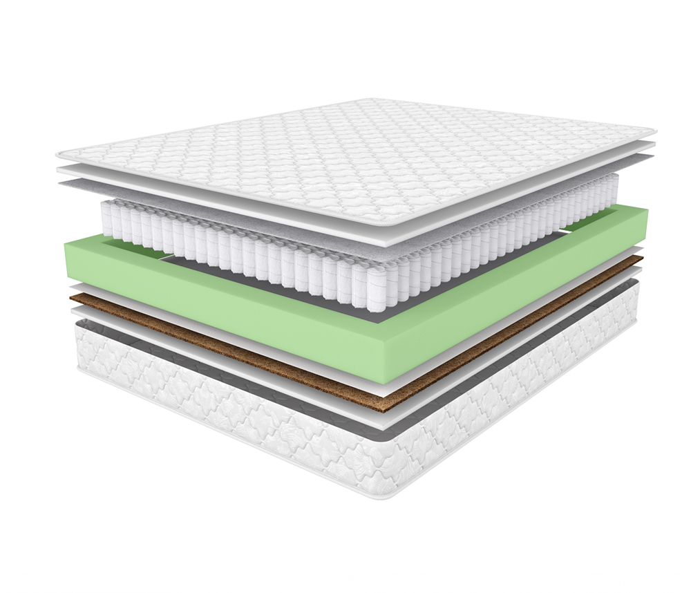 Двусторонний матрас с разными сторонами жесткости на основе независимого пружинного блока.