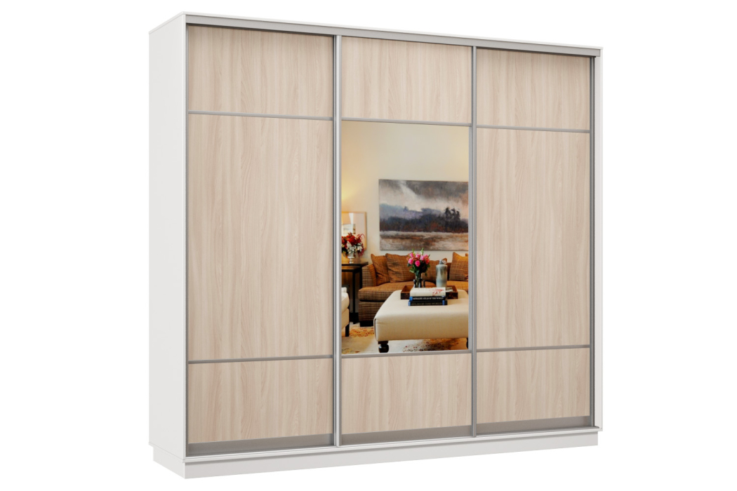 Шкаф-купе Премьер Лайт 59 (08;05;08) трехдверный (Ясень шимо светлый/Белый)