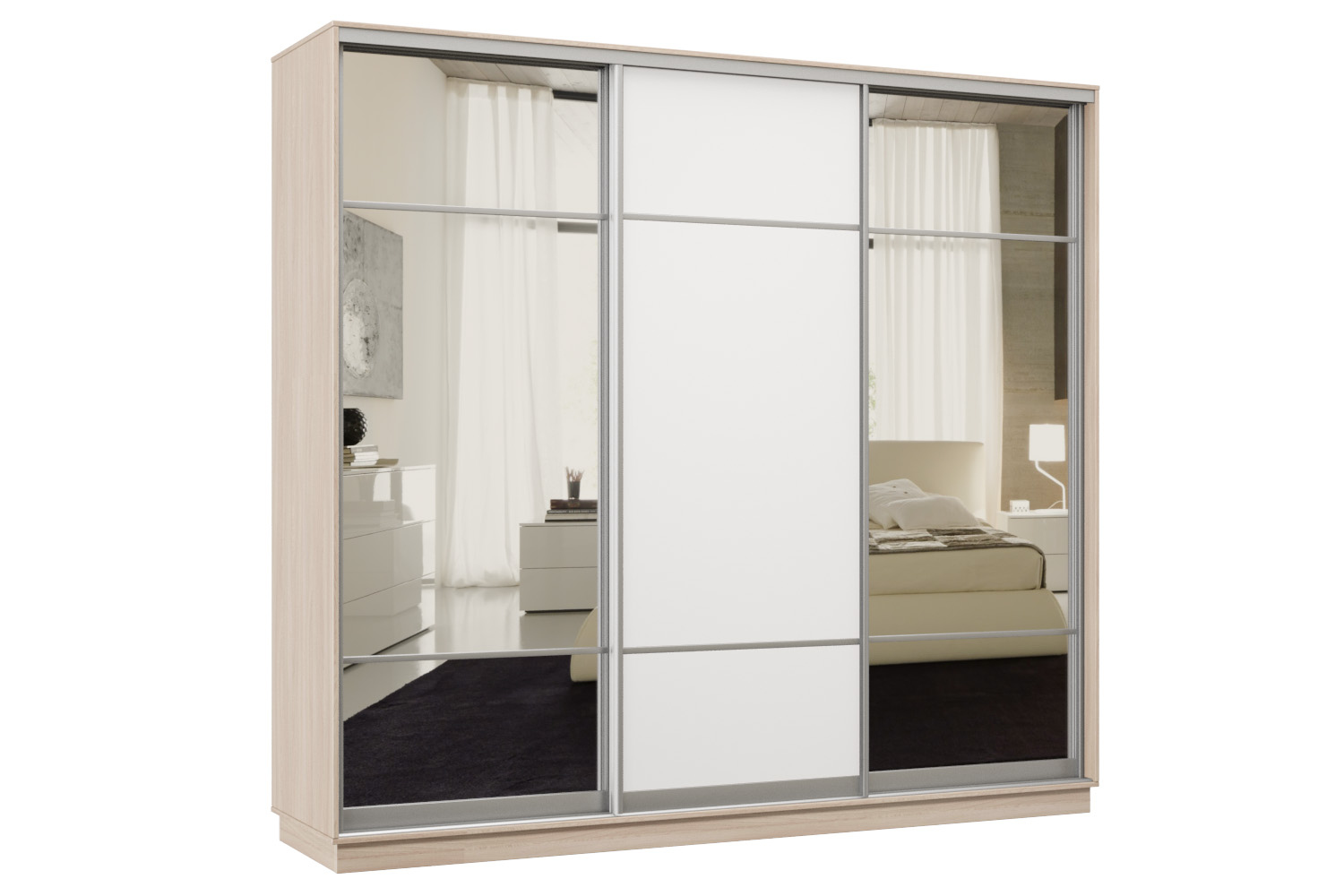Шкаф-купе Премьер Лайт 57 (11;08;11) трехдверный (Ясень шимо светлый / Белый глянец)