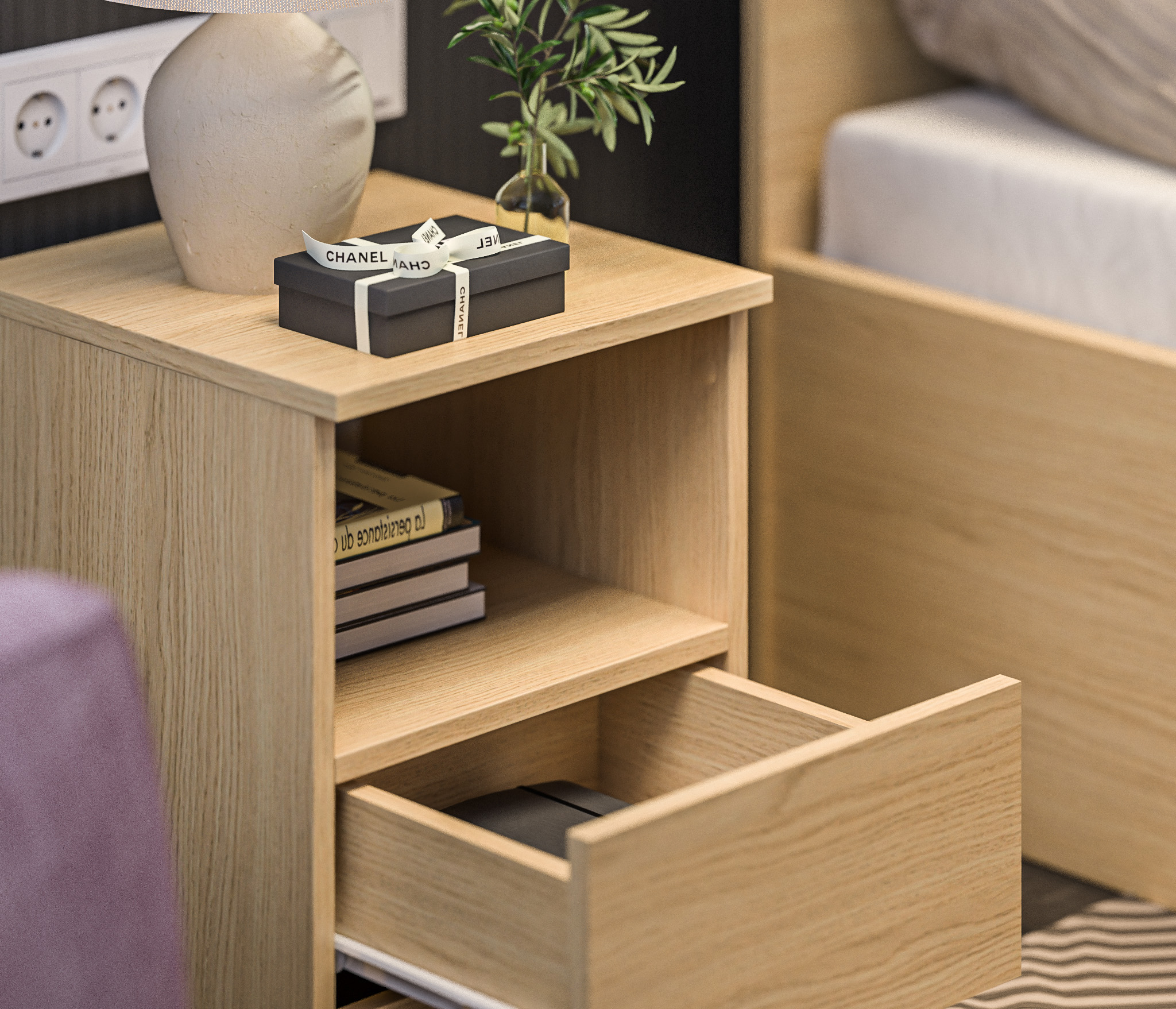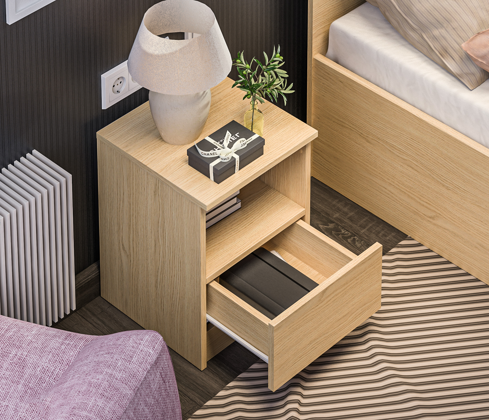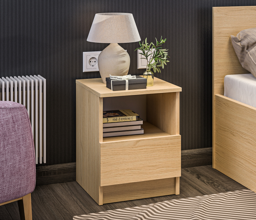 Прикроватная тумба Альфа СБ-2957, выполненная в минималистичном стиле, может быть частью гарнитура, а может быть отдельным предметом мебели. Тумба будет органично смотреться в спальне и детской.