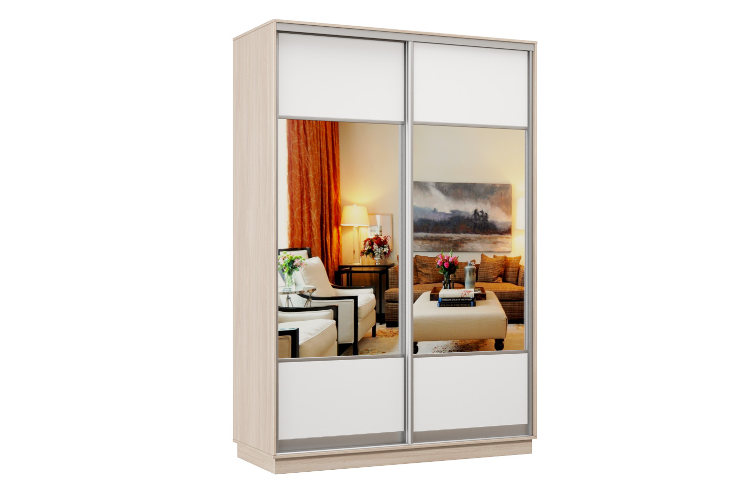 Шкаф-купе Премьер Лайт 01 (05;05) двухдверный (Ясень шимо светлый / Белый глянец)