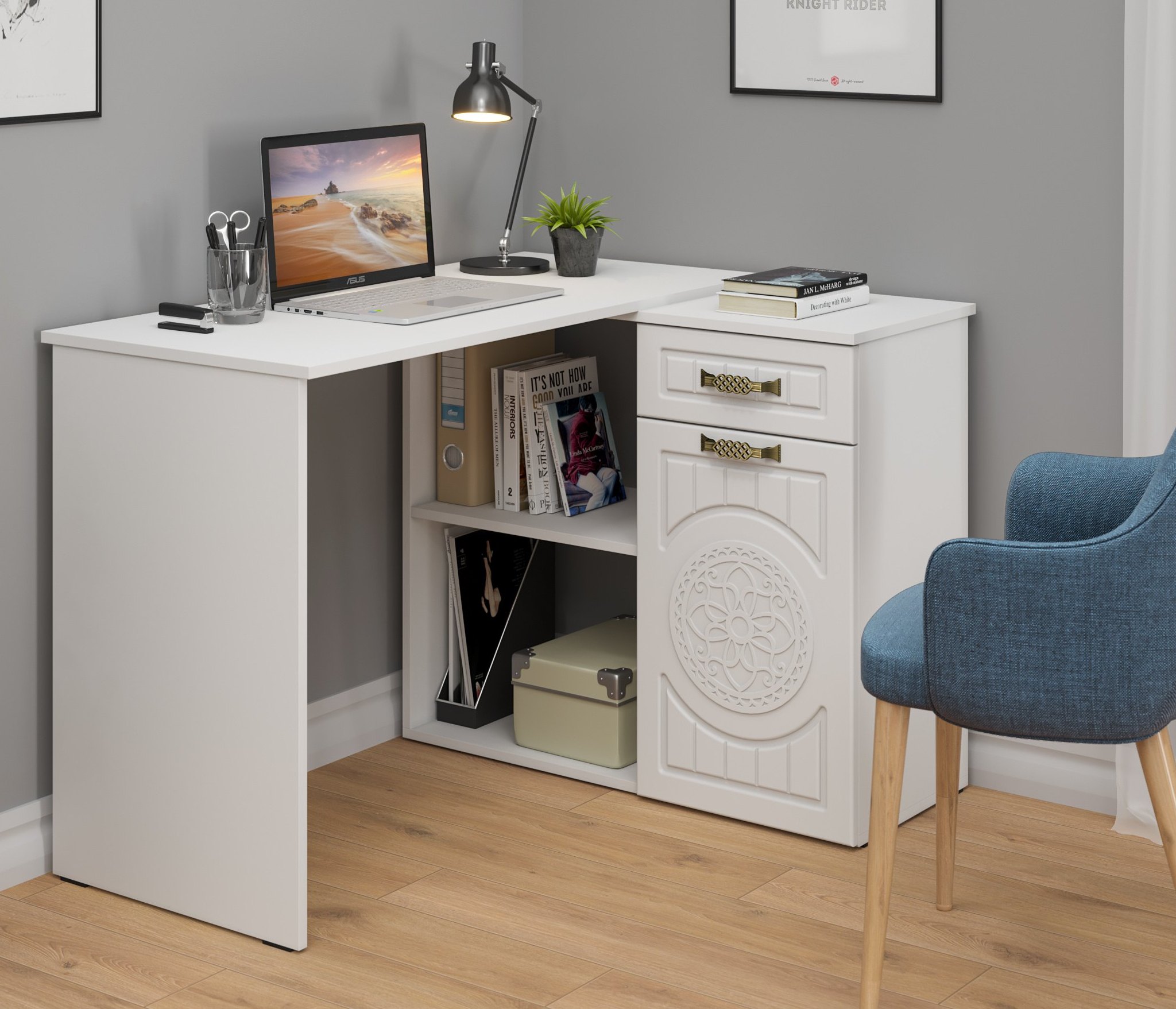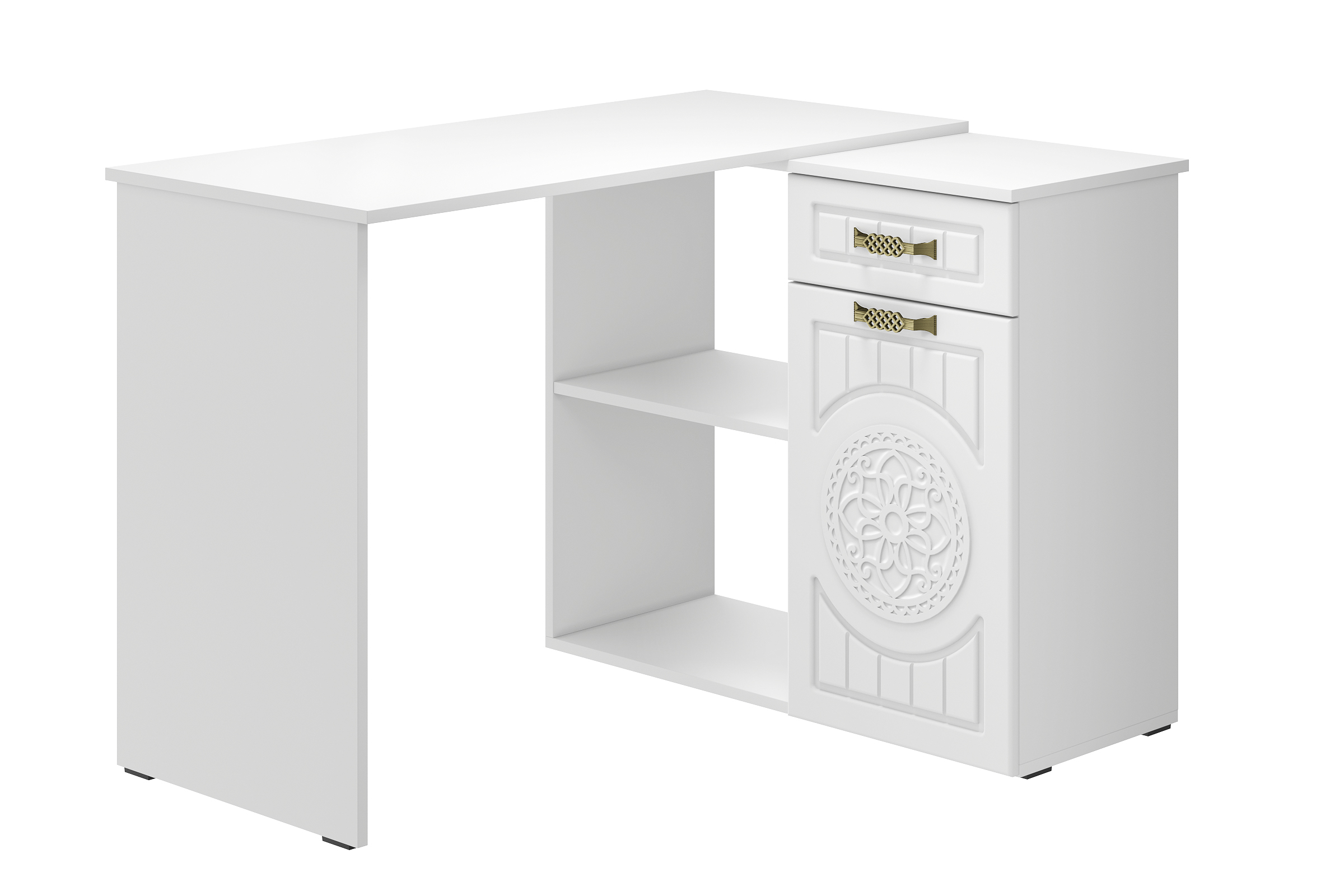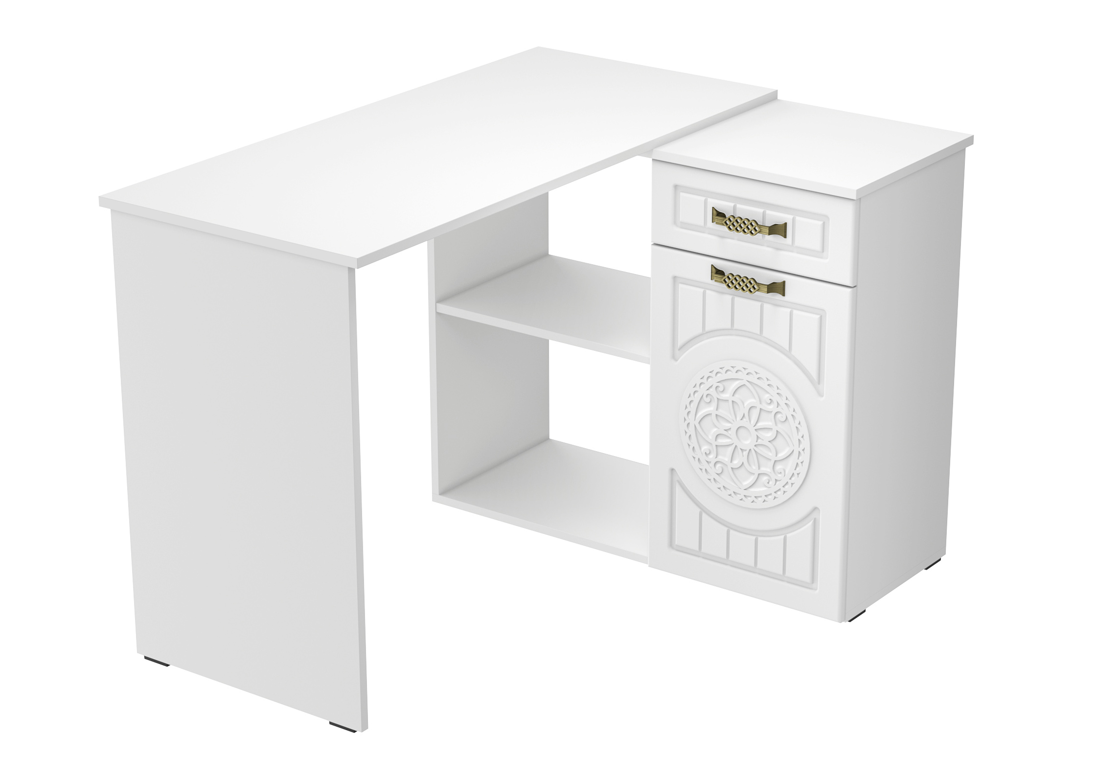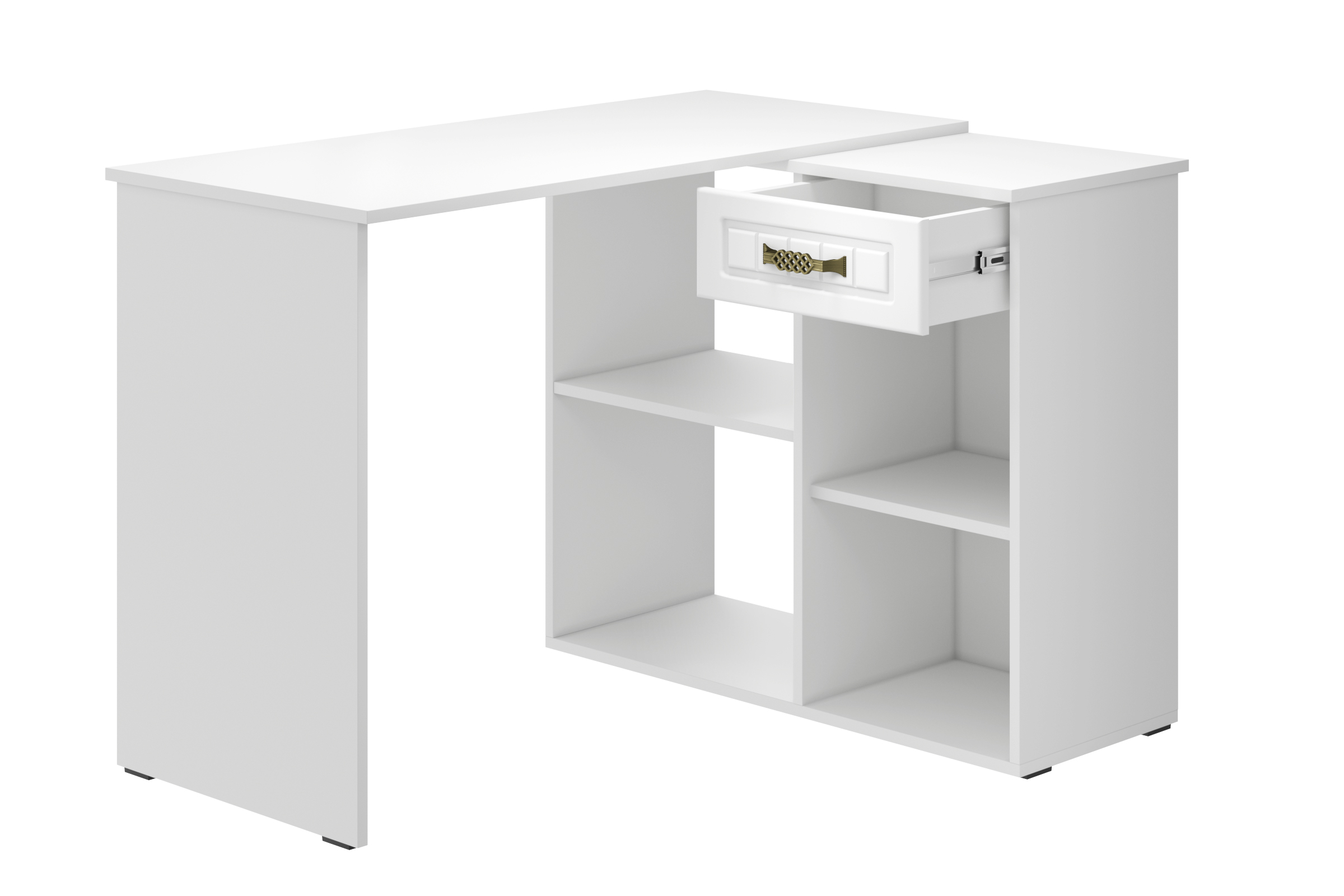 Угловой стол Монблан МБ-74К станет отличным местом для работы. В выдвижном ящике можно хранить блокнот, канцелярские принадлежности. Стильный дизайн позволит разместить в любом современной интерьере. Модуль может быть собран в зеркальном варианте "правым" или "левым". Фурнитура: телескопические направляющие полного выдвижения, петли с доводчиками.