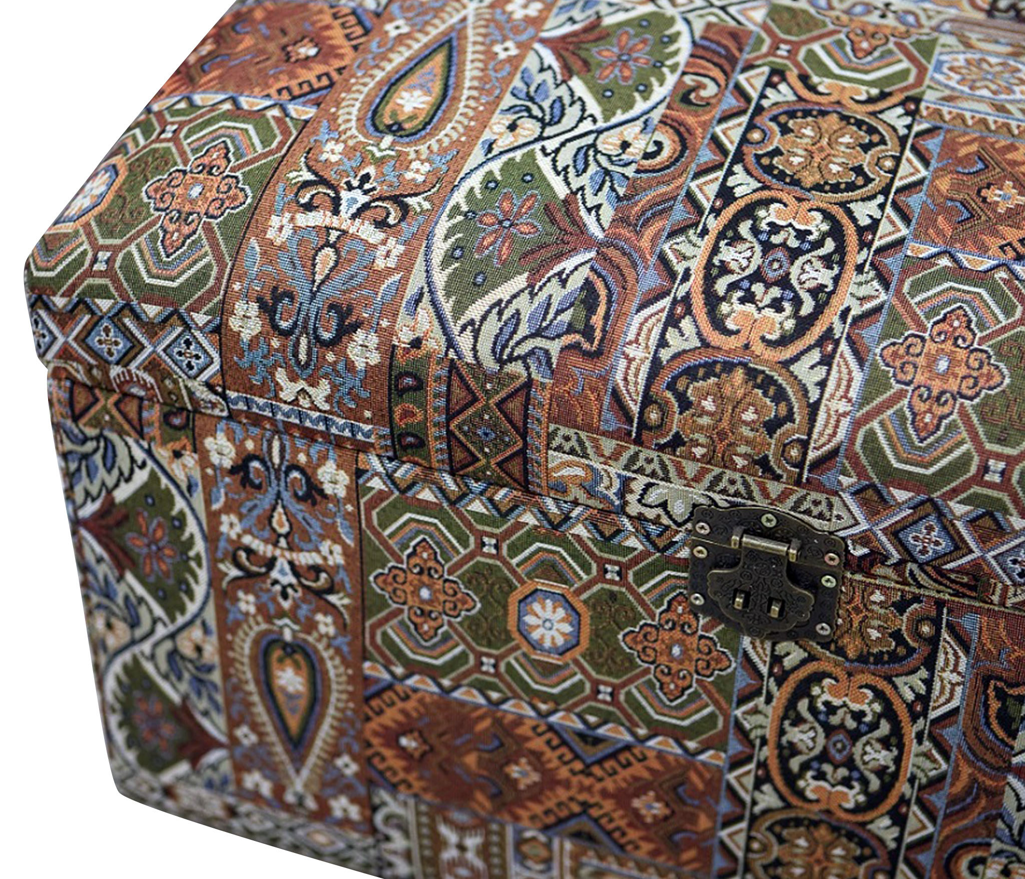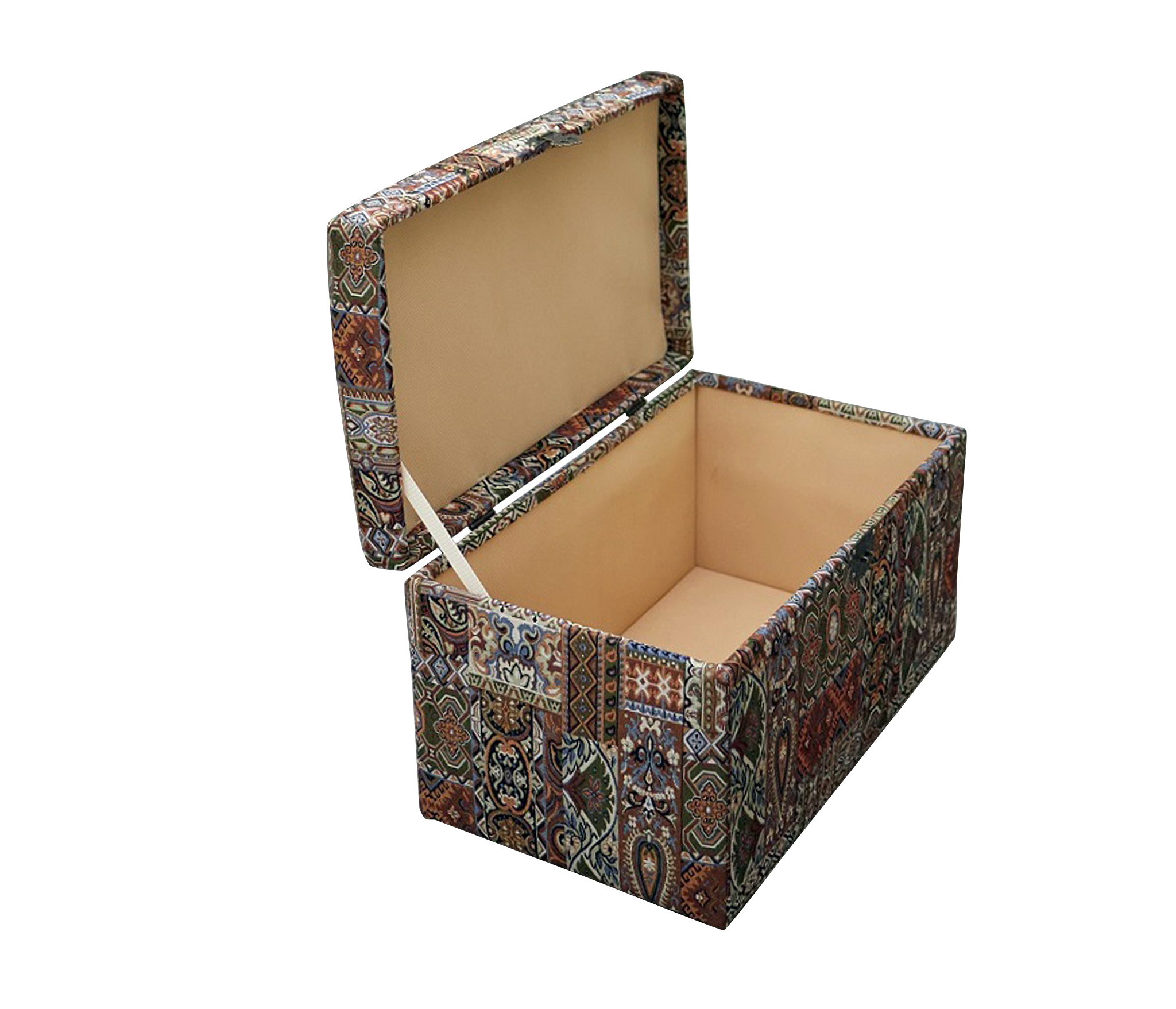 Банкетка "Восточный ковер" с ящиком для хранения в восточном стиле сделан из гобелена. Изысканный сундук удобен в качестве банкетки или пуфика - имеет мягкое сиденье и выдерживает вес сидящего человека до 150 кг. Внутри сундука - огромное пространство, где можно хранить все: от детских игрушек до постельного белья, одежды, обуви. Пластиковые ножки, на которых стоит сундук, не царапают пол. Но и переносить его тоже достаточно легко - вес сундука всего около 7 кг. Пуфик в прихожую, коридор, в спальню, в гостинную, в детскую, в кухню, в зал прекрасно впишется в любой интерьер офиса, дома или дачи. Пуф мягкий идеальный подарок мужчине или женщине на свадьбу, годовщину или юбилей. Подарок любимой, маме, жене, подруге. Сундук подойдет к любому интерьеру дома, дачи,и смотрится дорого и презентабельно. Элегантный пуфик банкетка будет служить местом для сидения и дополнительным местом для хранения. Пуфики удобны в качестве тумбы, прикроватного туалетного столика, полки, обувницы, стула, коробки для хранения. В ящик банкетки можно сложить обувь, книги, игрушки , постельное белье. Пуф с крышкой , банкетки разных цветов , размеров и фактур : большие, высокие, круглые, велюр, из рогожки, на ножках и без, из экокожи, ткани, с каретной стяжкой представлены в нашем магазине. Банкетку удобно использовать для сидения и в качестве подставки для ног или лежака для животных. Прочный каркас, качественные материалы, эксклюзивный дизайн, стильная обивка не оставят равнодушными взрослых и детей. Наполнитель для пуфа упругий поролон. Такой пуфик-банкетка альтернатива круглому пуфу, бескаркасному пуфу, отличная замена пуфа мешка.