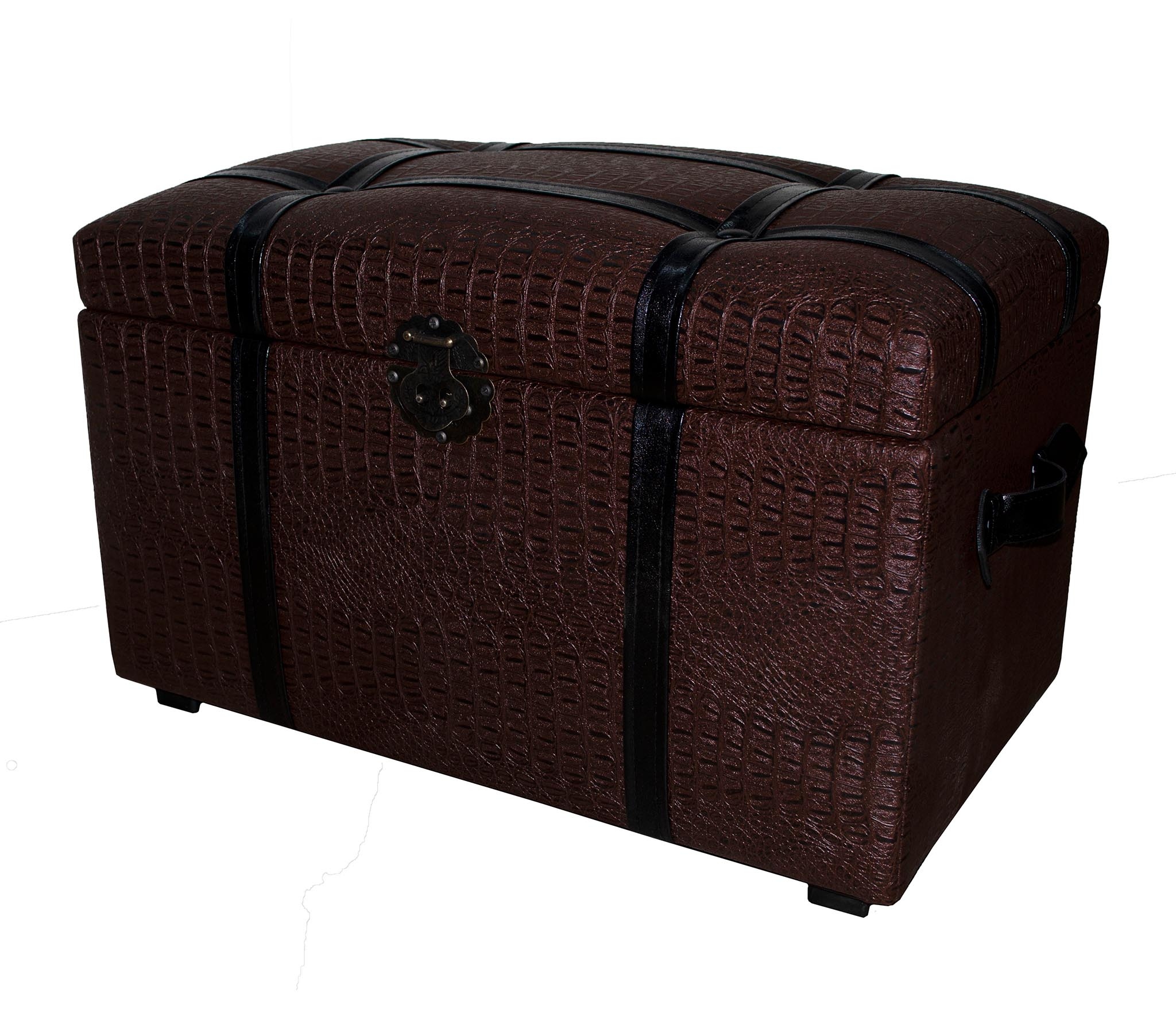 Банкетка "Алигатор" с ящиком для хранения представлена в классическом дизайне под "крокодиловую кожу" коричневого цвета. Мебель из такой кожи будет смотреться гармонично в любом интерьере дома или дачи- от классики до хай-тека. Сундук банкетка имеет пластиковые ножки и декоративный металлический замок. Пуфик подойдет в прихожую, коридор, в спальню, в гостинную, в детскую, в кухню, в зал прекрасно впишется в любой интерьер офиса, дома или дачи. Пуф мягкий идеальный подарок мужчине или женщине на свадьбу, годовщину или юбилей. Подарок любимой, маме, жене, подруге. Сундук очень удобен в использовании в качестве пуфа или банкетки. Его крышка изготовлена из прочного материала, способного выдерживать большую вертикальную нагрузку до 150 кг. Объемное внутреннее пространство банкетки, отделанное бежевым спанбондом, позволяет хранить различные предметы домашнего обихода и вещи. Элегантный пуфик банкетка будет служить местом для сидения и дополнительным местом для хранения. Пуфики удобны в качестве тумбы, прикроватного туалетного столика, полки, обувницы, стула, коробки для хранения. В ящик банкетки можно сложить обувь, книги, игрушки , постельное белье. Пуф с крышкой , банкетки разных цветов , размеров и фактур : большие, высокие, круглые, велюр, из рогожки, на ножках и без, из экокожи, ткани, с каретной стяжкой представлены в нашем магазине. Банкетку удобно использовать для сидения и в качестве подставки для ног или лежака для животных. Прочный каркас, качественные материалы, эксклюзивный дизайн, стильная обивка не оставят равнодушными взрослых и детей. Наполнитель для пуфа упругий поролон. Такой пуфик-банкетка альтернатива круглому пуфу, бескаркасному пуфу, отличная замена пуфа мешка.