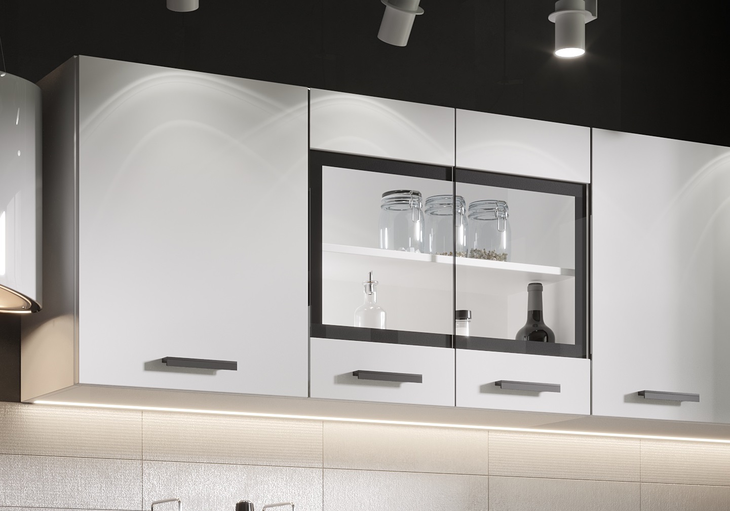 два верхних шкафа: первый шкаф - общая ширина 1200мм (500мм , 700мм со стеклом). Внимание! Это единый элемент, разъединить шкафы невозможно! Второй шкаф: на 800мм. Высота 626мм. Глубина 270 мм.