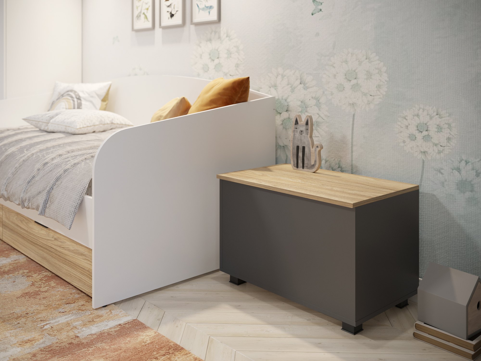 Ящик для игрушек/сундук Скайлайт СЛ-60 прекрасно подойдет для хранения конструкторов, наборов для творчества или мягких игрушек. Корпус и крышка изделия изготовлены из ЛДСП 16 мм.