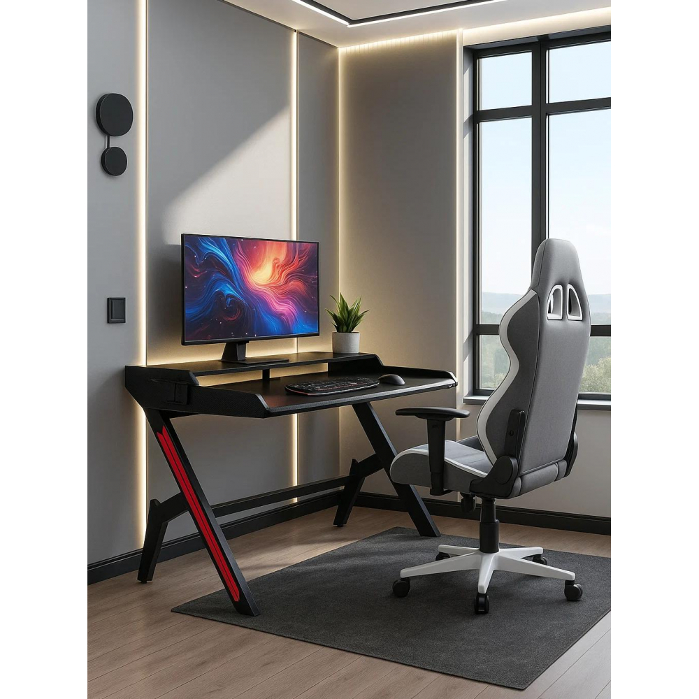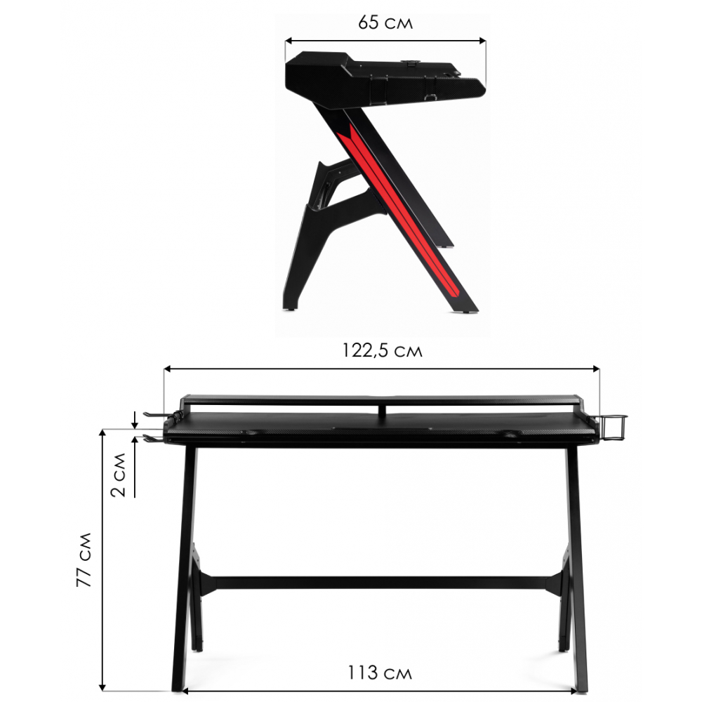 Стол оснащен подстаканником и крючком для наушников.