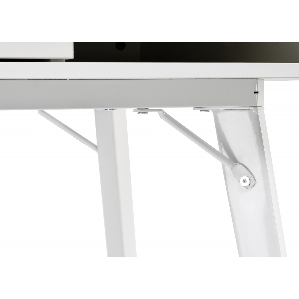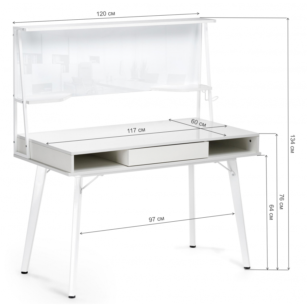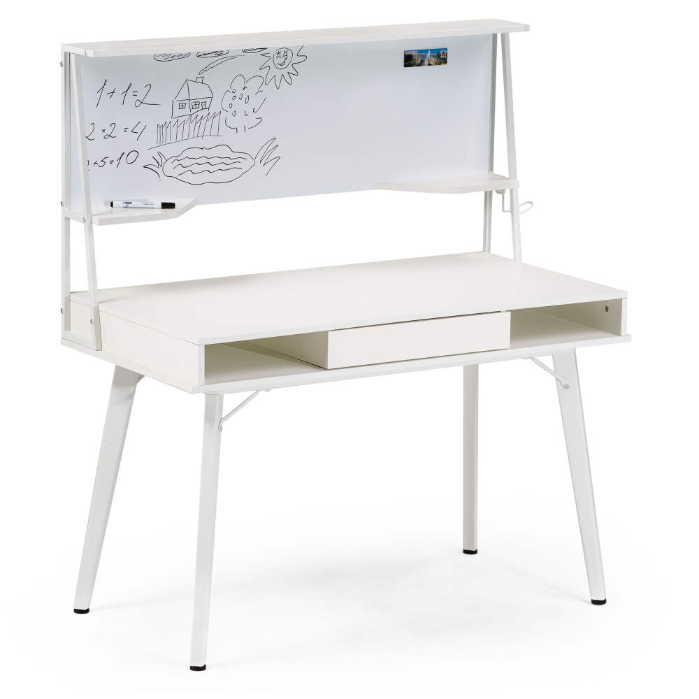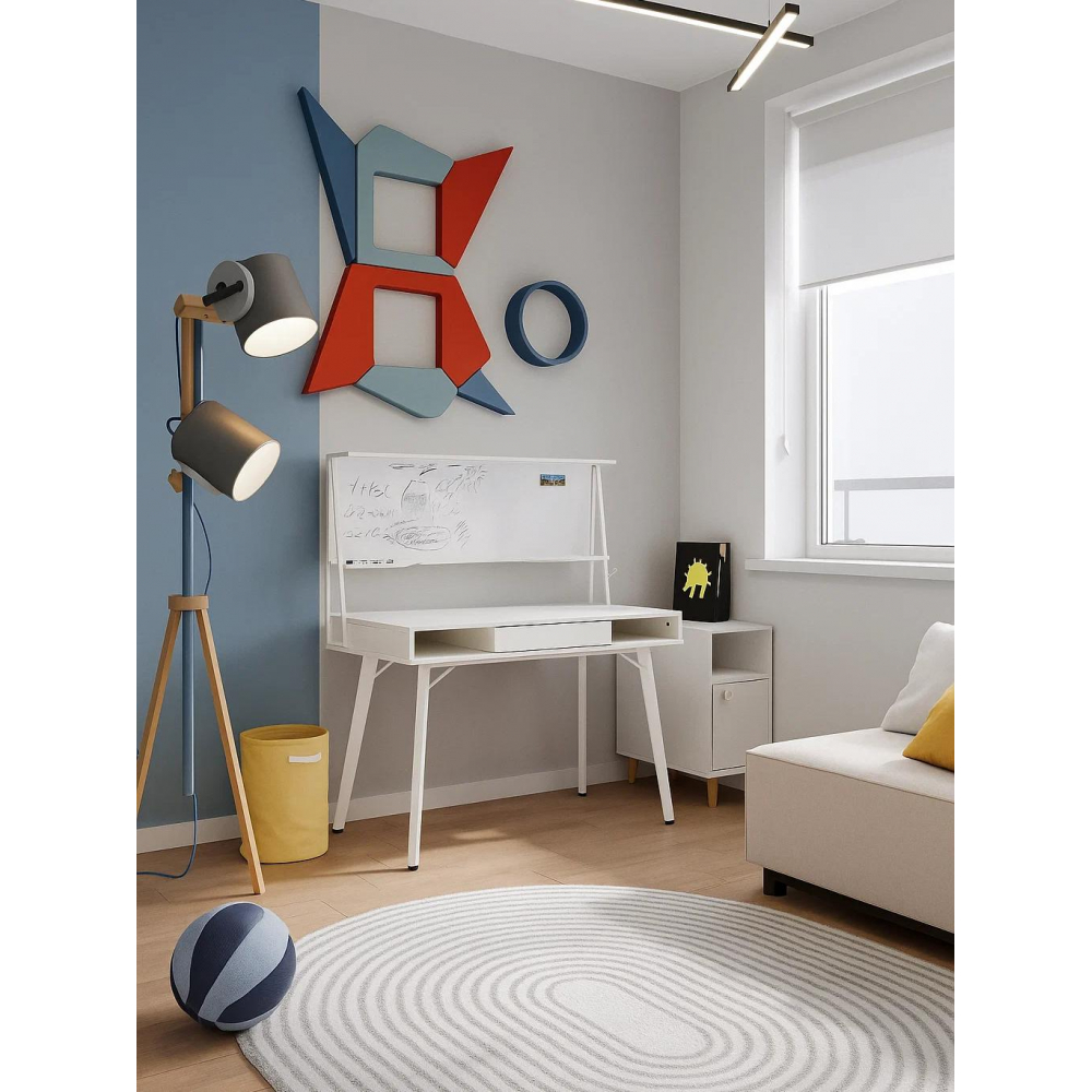 Используйте для записи только специальные маркеры, губки-стиратели и специализированные спреи. Материал каркаса - МДФ / Металл; Материал ножек - Металл; Материал столешницы - МДФ; Цвет каркаса - Белый; Цвет ножек - Белый; Цвет столешницы - Белый; Цвет подстолья - Белый; Ширина - 60; Высота - 134; Высота стола - 76; Длина - 120.