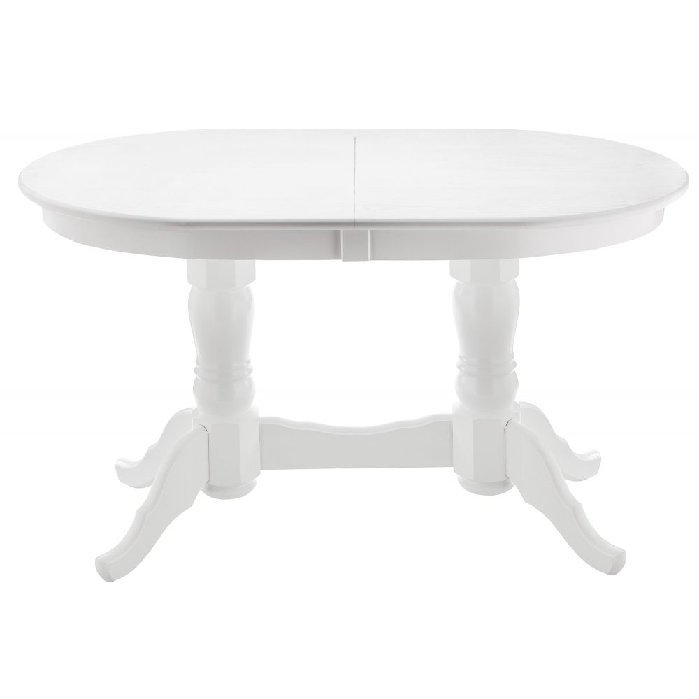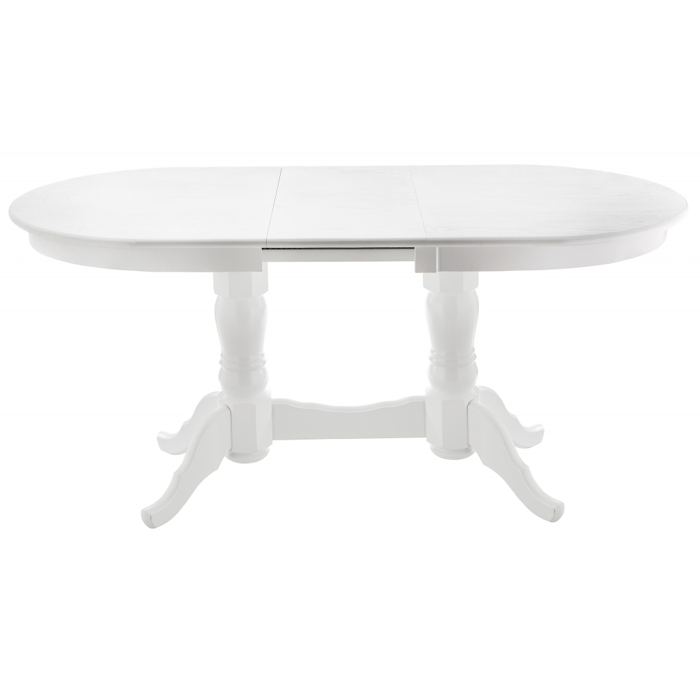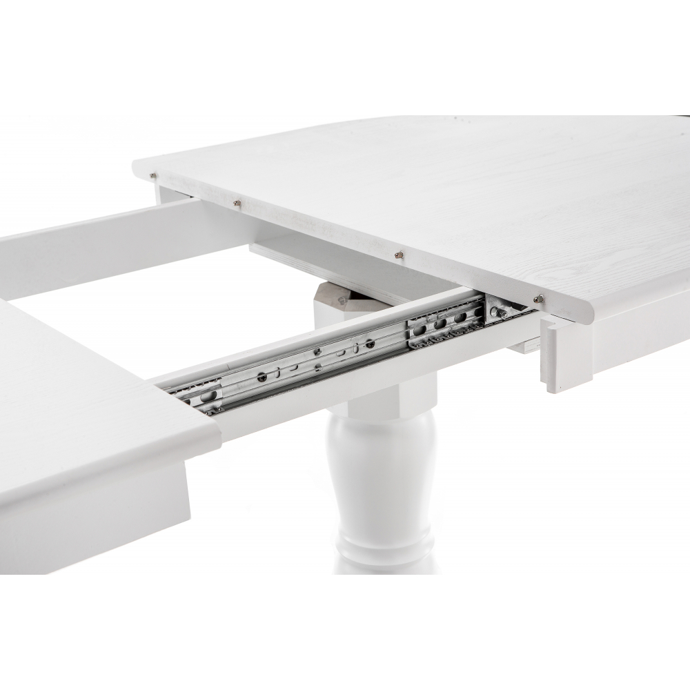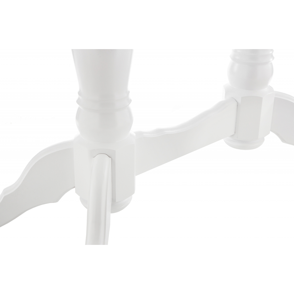 Материал каркаса - Массив дерева; Материал ножек - Массив дерева; Материал столешницы - МДФ / шпон; Цвет каркаса - Белый; Цвет ножек - Белый; Цвет столешницы - Белый; Цвет подстолья - Белый; Ширина - 80; Высота - 79; Длина стола в разложенном виде - 165; Длина - 130.