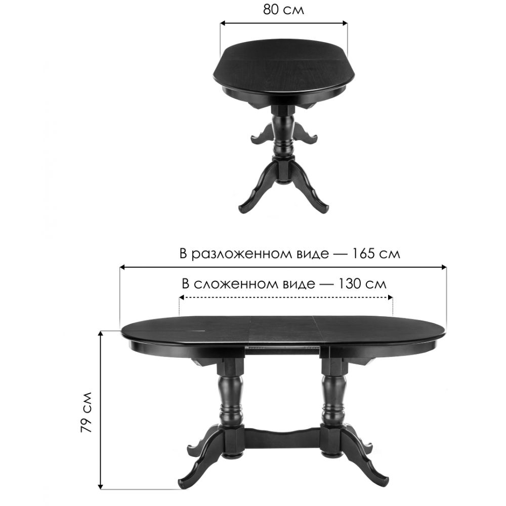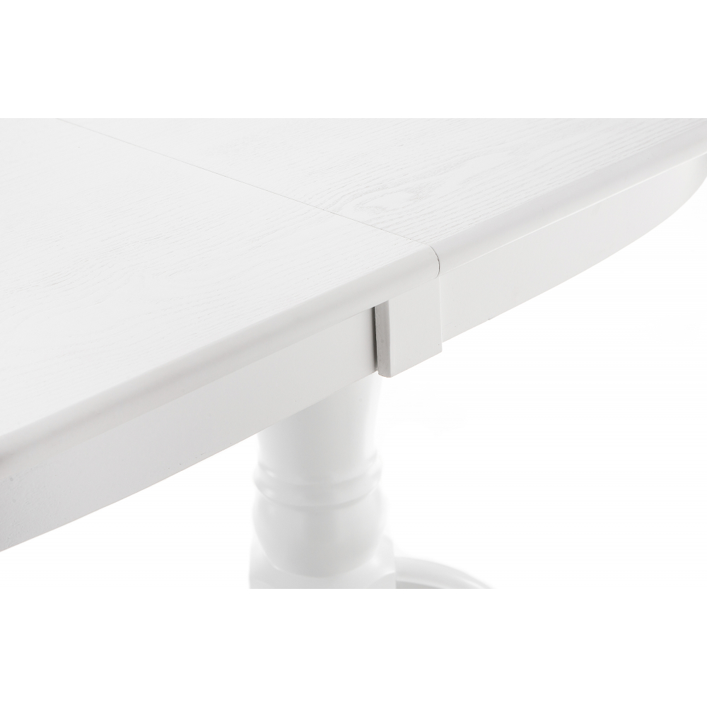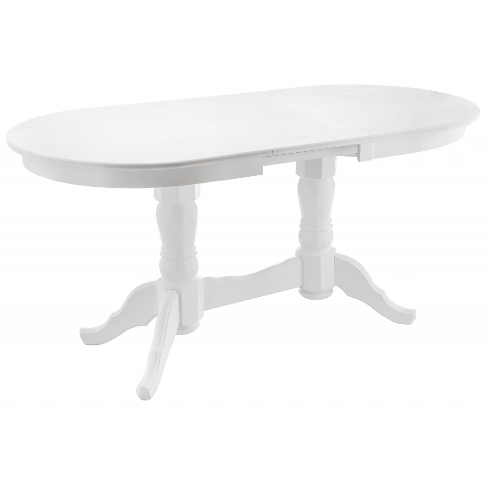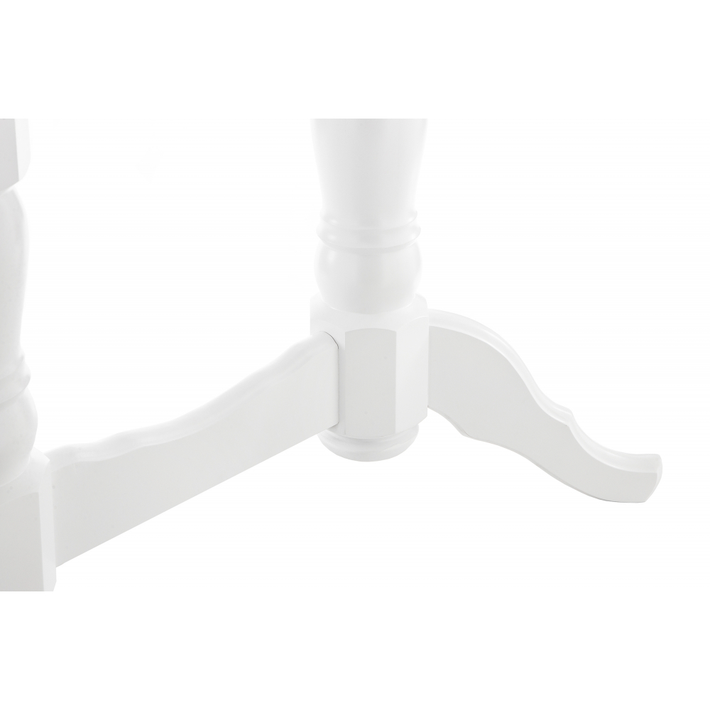 Материал каркаса - Массив дерева; Материал ножек - Массив дерева; Материал столешницы - МДФ / шпон; Цвет каркаса - Белый; Цвет ножек - Белый; Цвет столешницы - Белый; Цвет подстолья - Белый; Ширина - 80; Высота - 79; Длина стола в разложенном виде - 165; Длина - 130.