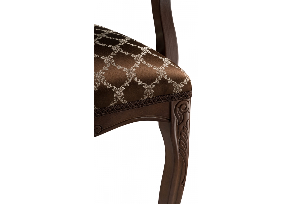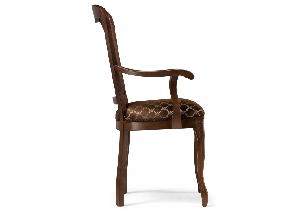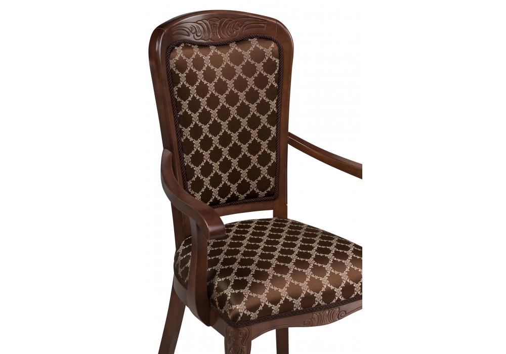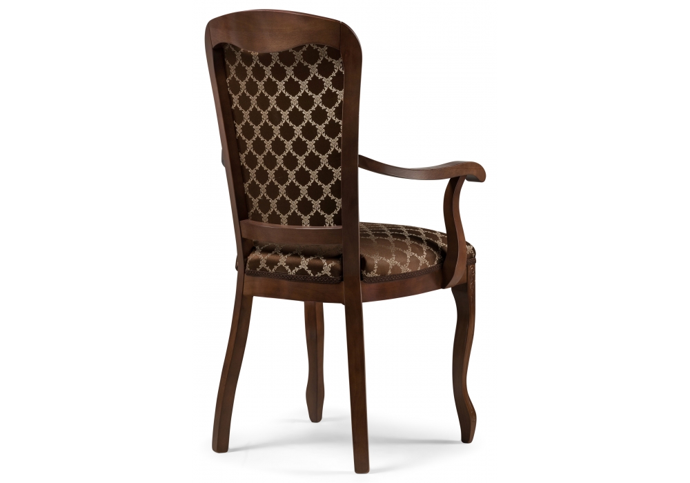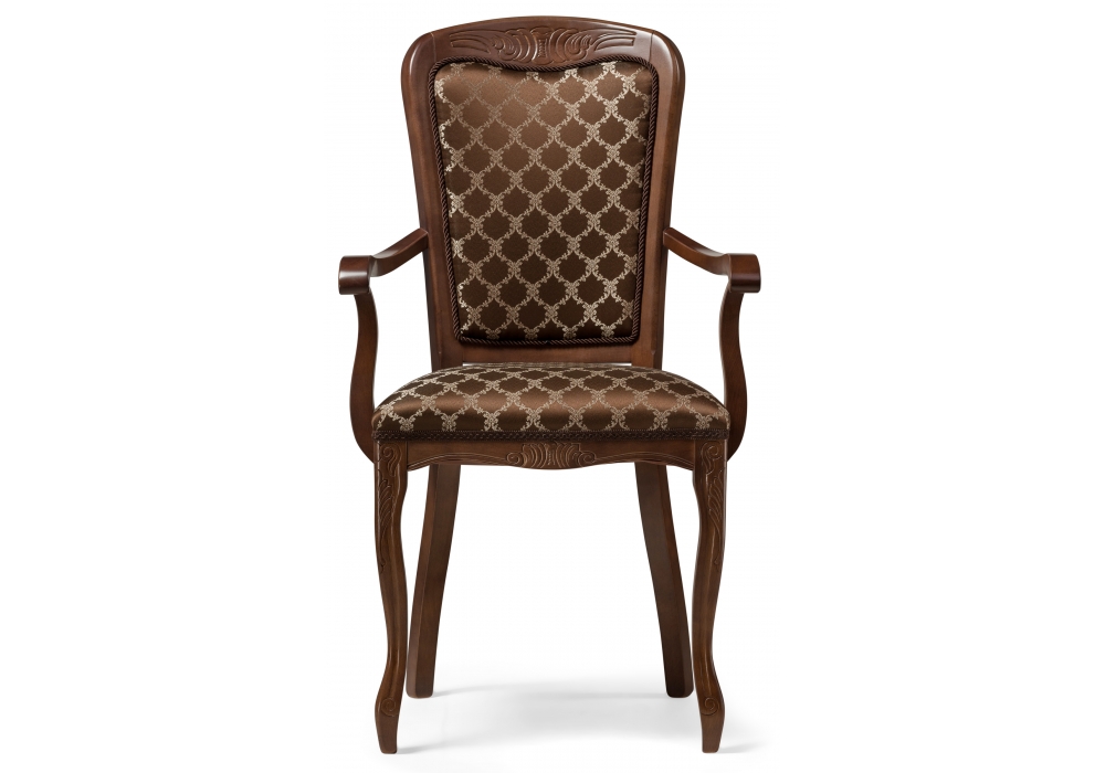 Высота подлокотников: 69 см. Материал каркаса - Массив бука; Материал сиденья - Ткань; Материал ножек - Массив бука; Материал обивки - Ткань; Цвет каркаса - Орех; Цвет сиденья - Коричневый; Цвет ножек - Орех; Цвет обивки - Коричневый; Ширина - 58; Глубина - 60; Высота - 103; Ширина сиденья - 49; Глубина сиденья - 45; Высота сиденья - 52.