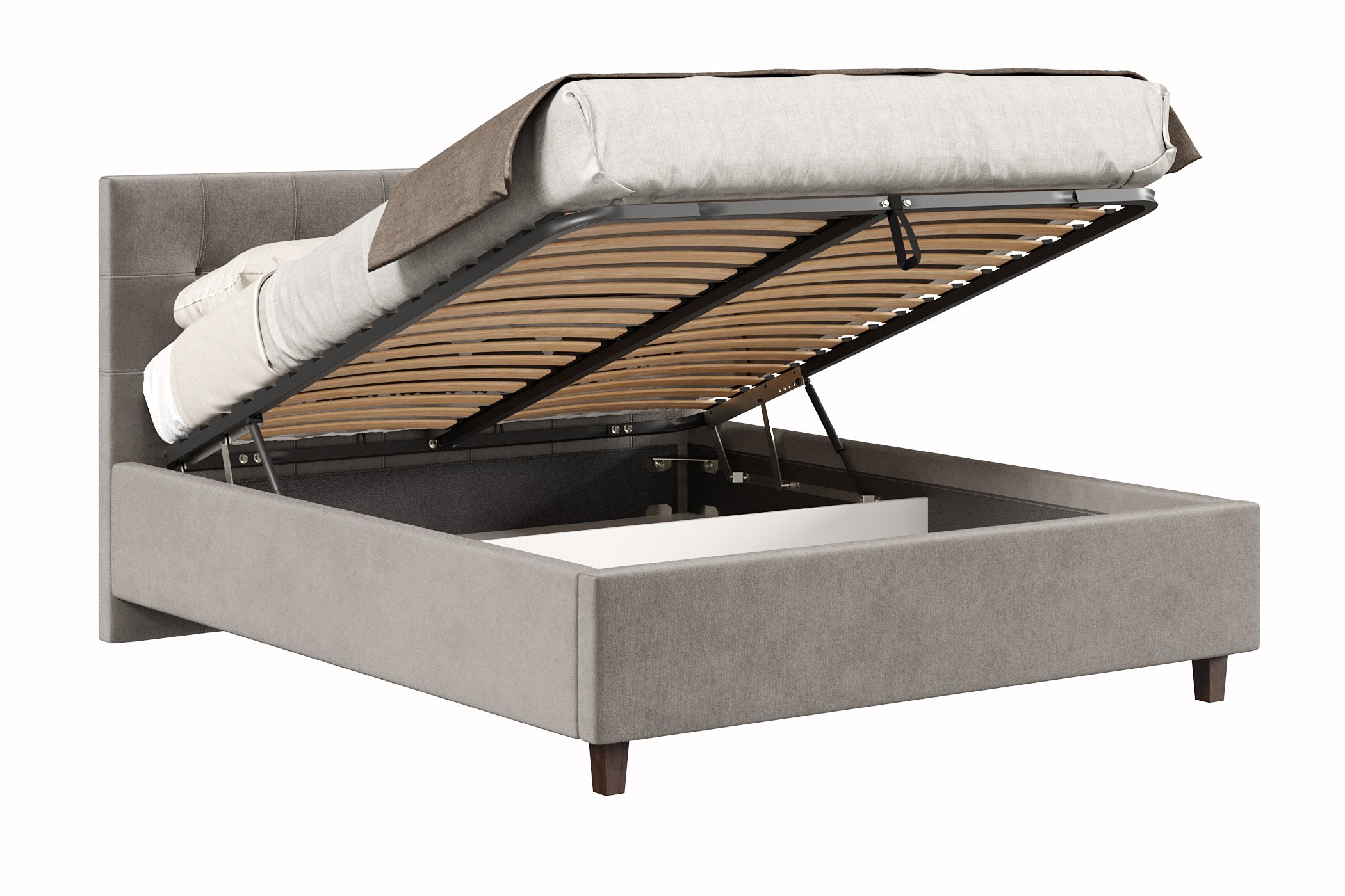 Кровать имеет нишу для хранения разных вещей, это очень удобно, если пространство в комнате не дает возможность поставить дополнительные шкафчики, либо полки.