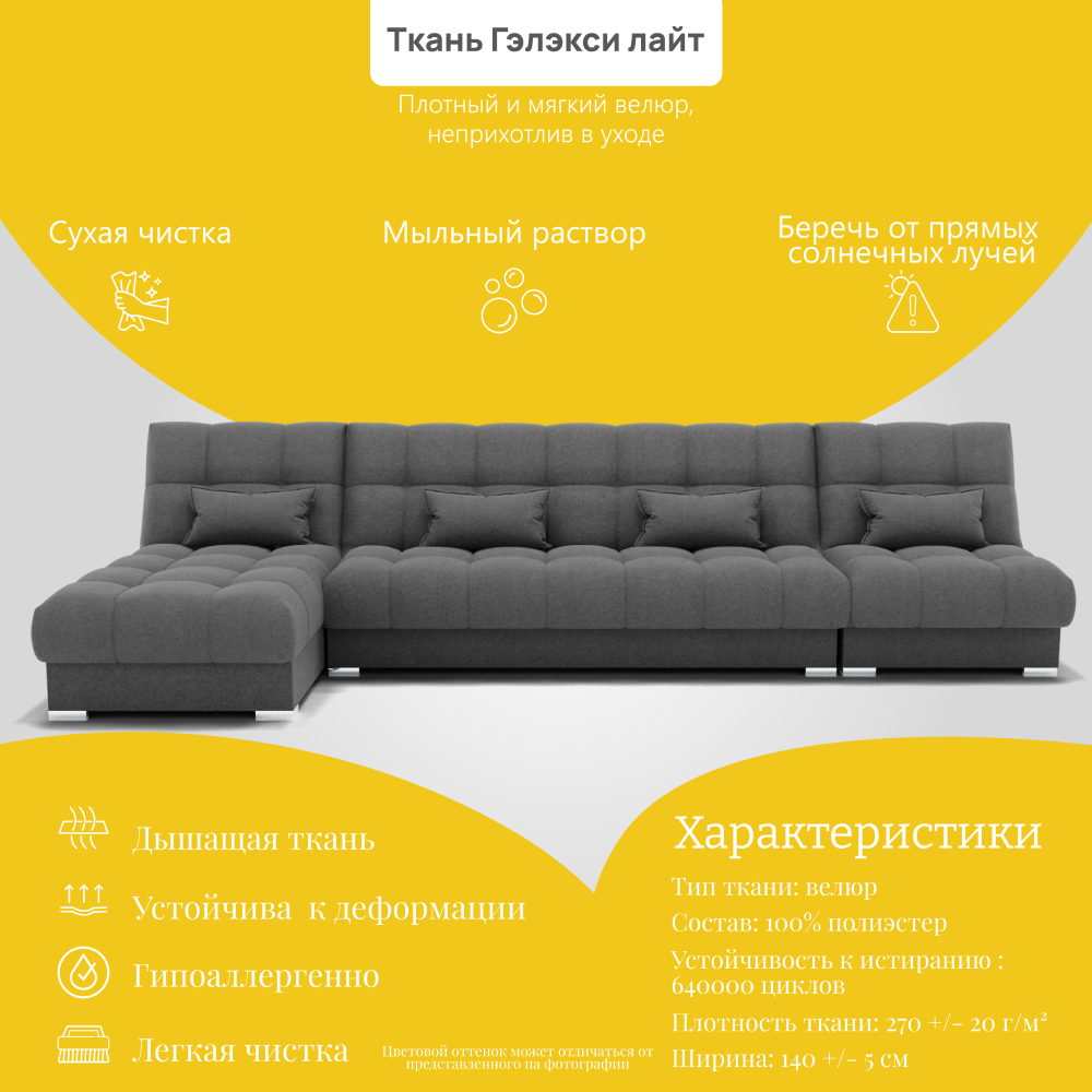 Отзывы о Столплит Угловой диван Фиеста-3 НПБ, велюр Серый