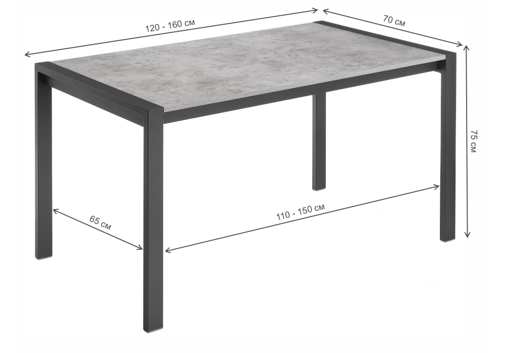 Отзывы о Столплит Стол деревянный Центавр 120 (160) х 70 (черный матовый) Бетон