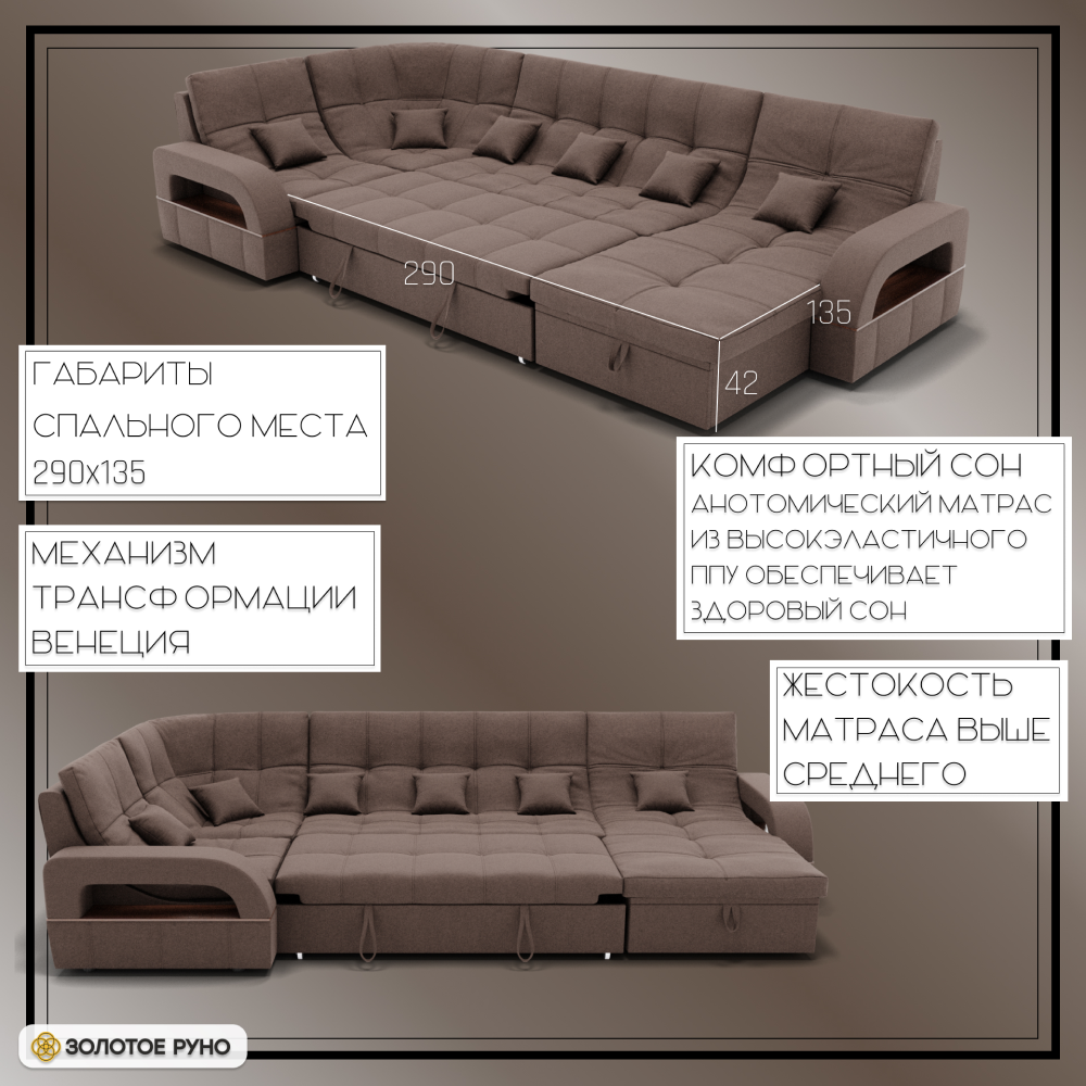 Отзывы о Столплит П-образный диван Майами-4 ППУ, велюр Коричневый