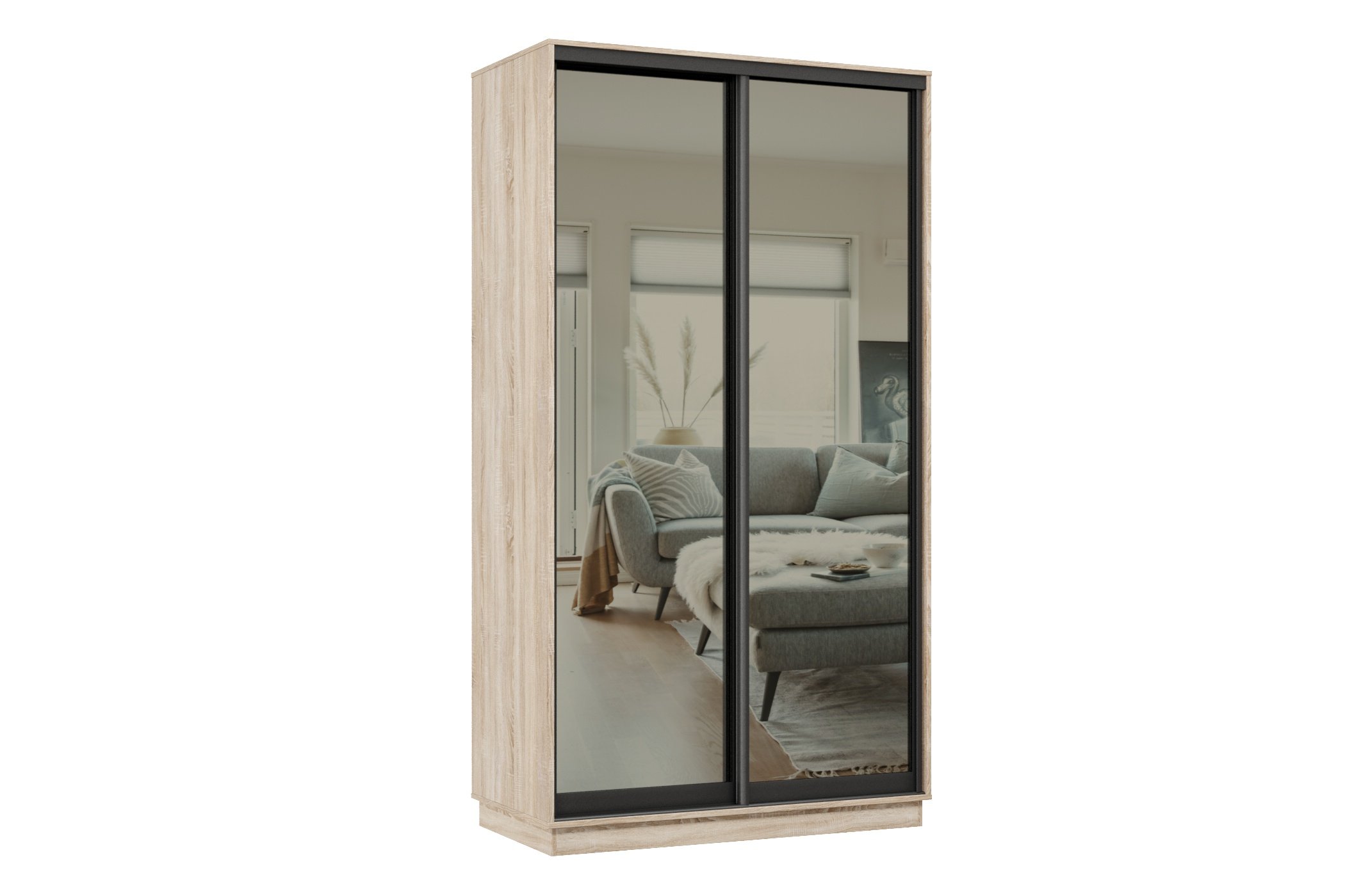 Шкаф-купе Премьер МИНИ 01 (01ЗГ;01ЗГ) фасады зеркало графит/двухдверный/Профиль чёрный муар (Дуб сонома)