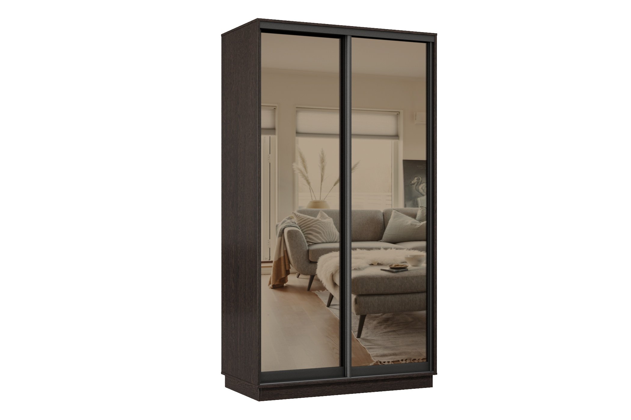 Отзывы о Столплит Шкаф-купе Премьер МИНИ 03 (01ЗБ;01ЗБ) фасады зеркало бронза/двухдверный/Профиль чёрный муар Венге