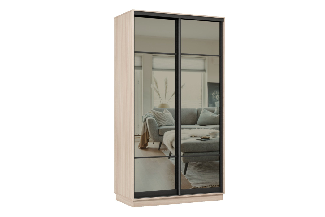 Отзывы о Столплит Шкаф-купе Премьер 10 (11ЗГ;11ЗГ) фасады зеркало графит/двухдверный/Профиль чёрный муар Ясень шимо светлый