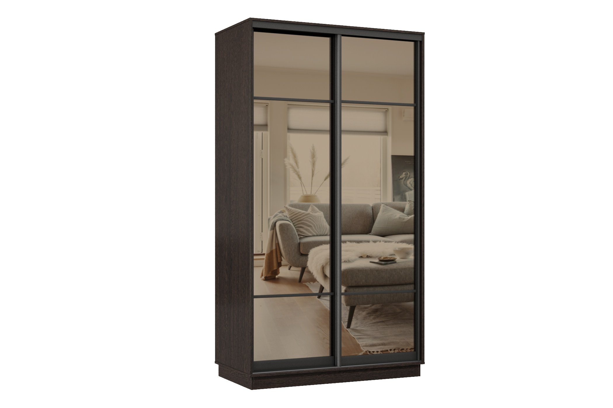 Отзывы о Столплит Шкаф-купе Премьер 10 (11ЗБ;11ЗБ) фасады зеркало бронза/двухдверный/Профиль чёрный муар Венге