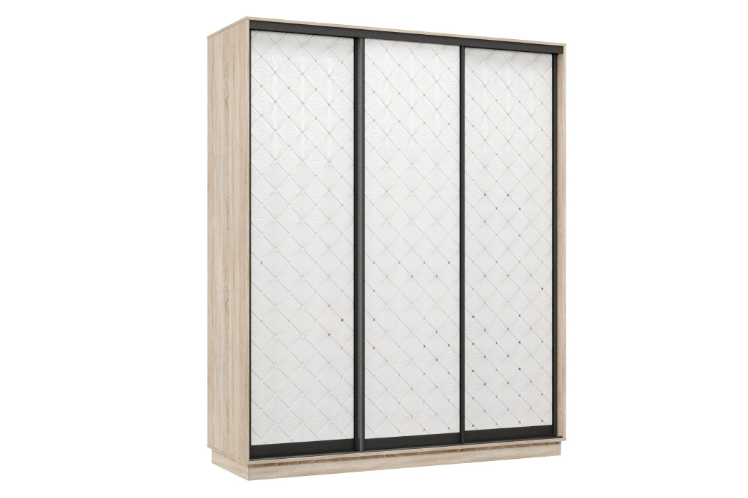 Шкаф-купе Премьер 21 (01РБ;01РБ;01РБ) фасады ромб белый/трёхдверный/Профиль чёрный муар (Дуб сонома) Код I0000374141