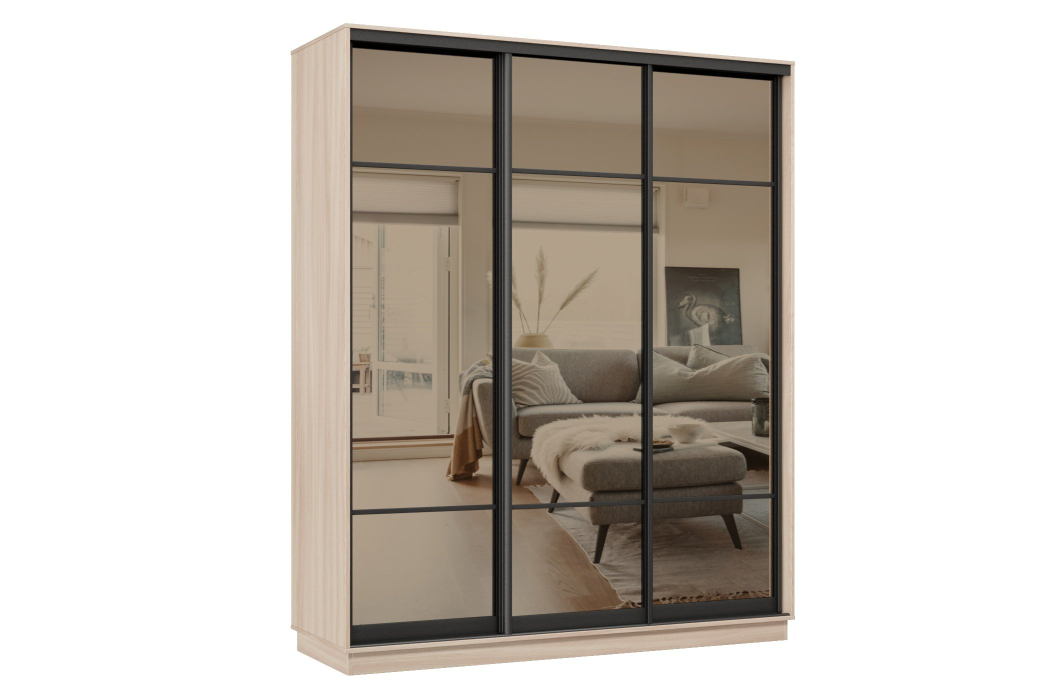 Отзывы о Столплит Шкаф-купе Премьер 23 (11ЗБ;11ЗБ;11ЗБ) фасады зеркало бронза/трёхдверный/Профиль чёрный муар Ясень шимо светлый