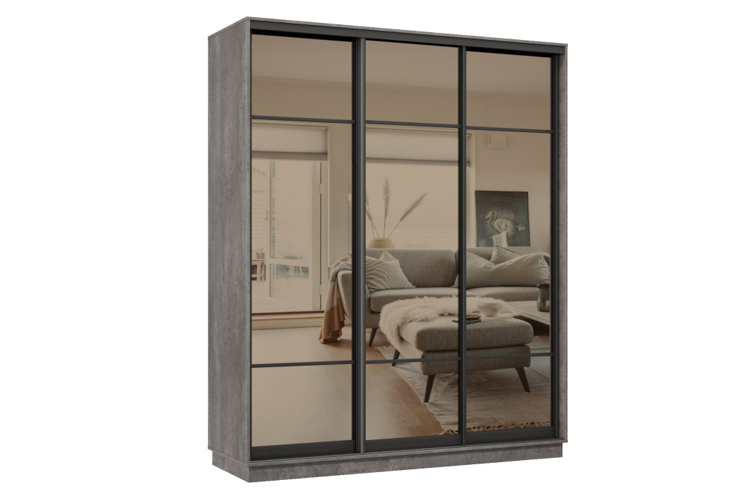Отзывы о Столплит Шкаф-купе Премьер 23 (11ЗБ;11ЗБ;11ЗБ) фасады зеркало бронза/трёхдверный/Профиль чёрный муар Бетон