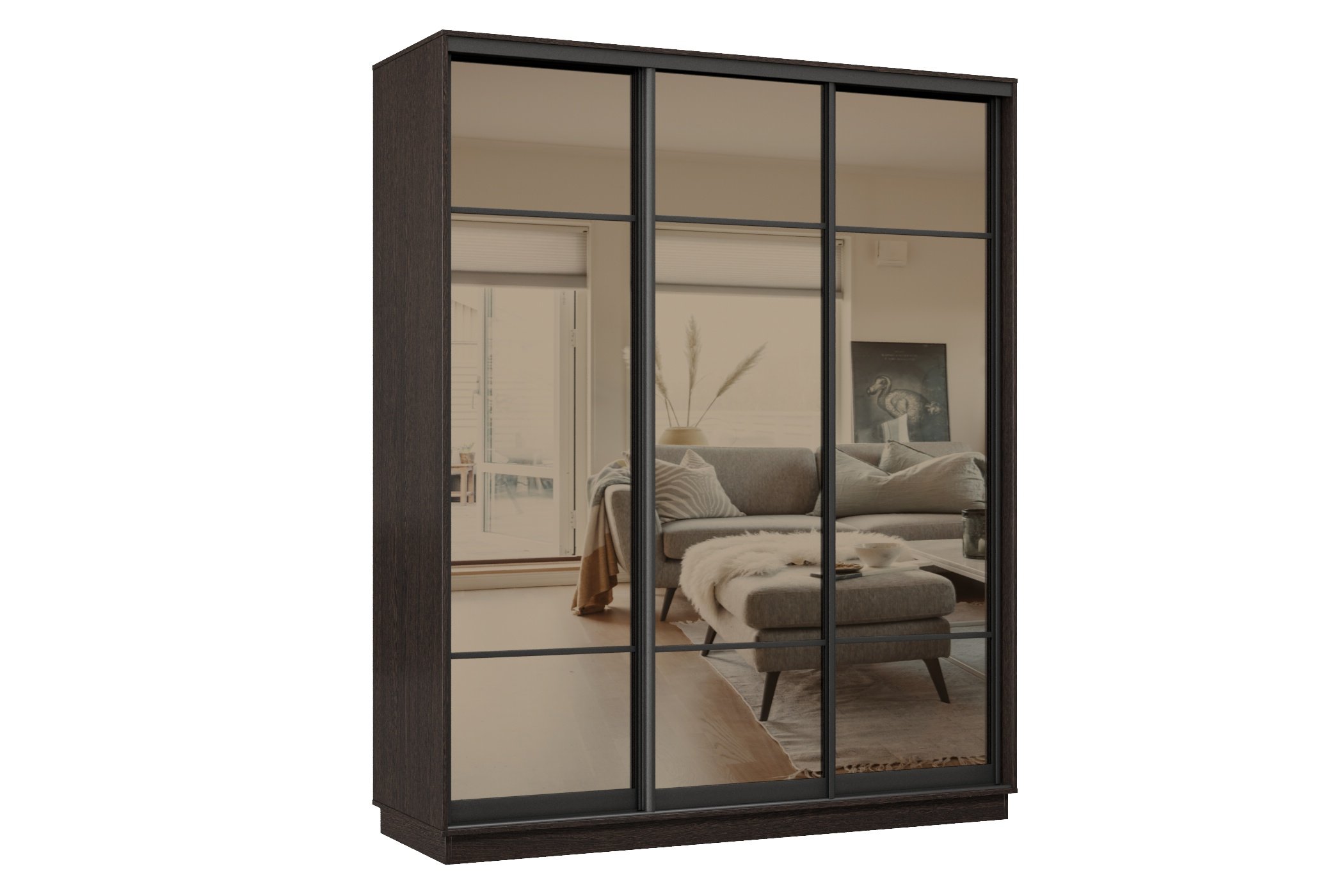 Отзывы о Столплит Шкаф-купе Премьер 24 (11ЗБ;11ЗБ;11ЗБ) фасады зеркало бронза/трёхдверный/Профиль чёрный муар Венге