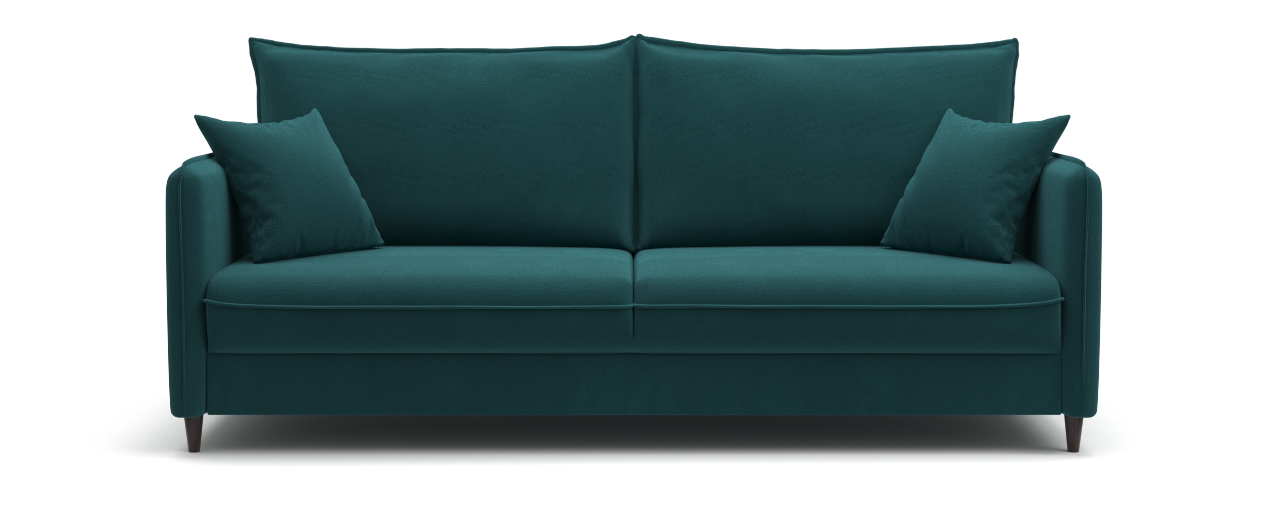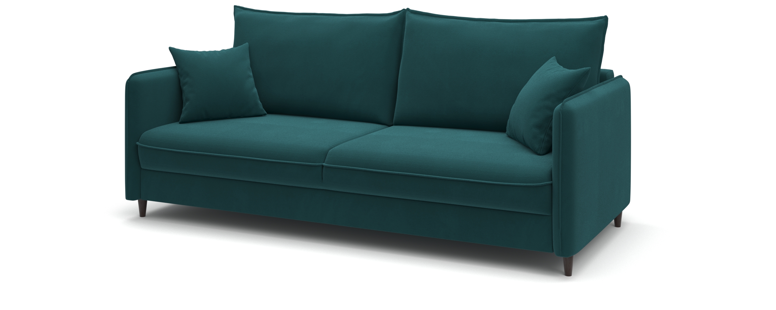 Диван-кровать «Фьорд» сочетает в себе функциональность и лаконичный внешний вид. В его дизайне присутствуют все основные элементы, свойственные скандинавскому стилю: тонкие подлокотники и мягкие подушки с отделкой модным «французским швом»; пара дополнительных миниатюрных подушек для украшения интерьера; декоративные складки в местах скругления подлокотника и сидения.