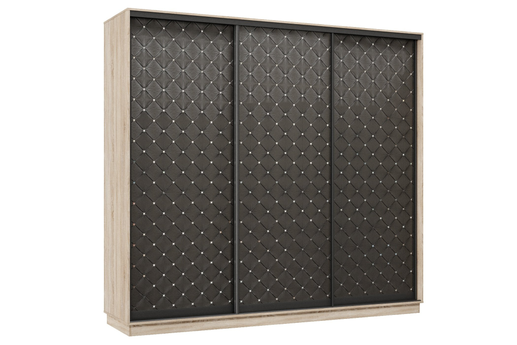 Шкаф-купе Премьер 58 (01РЧ;01РЧ;01РЧ) фасады ромб чёрный/трёхдверный/Профиль чёрный муар (Дуб сонома)