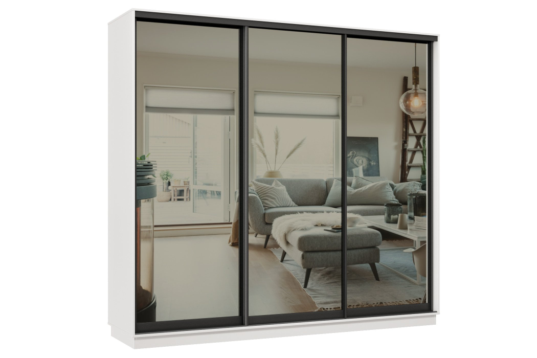 Отзывы о Столплит Шкаф-купе Премьер 60 (01ЗГ;01ЗГ;01ЗГ) фасады зеркало графит/трёхдверный/Профиль чёрный муар Белый