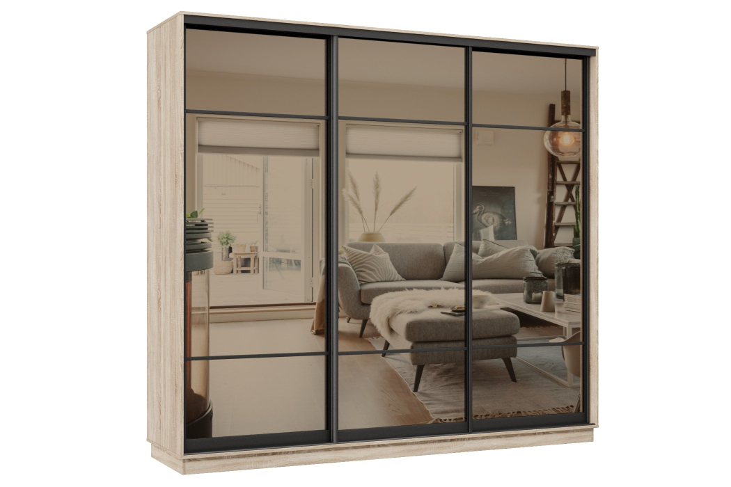 Шкаф-купе Премьер 60 (11ЗБ;11ЗБ;11ЗБ) фасады зеркало бронза/трёхдверный/Профиль чёрный муар (Дуб сонома)