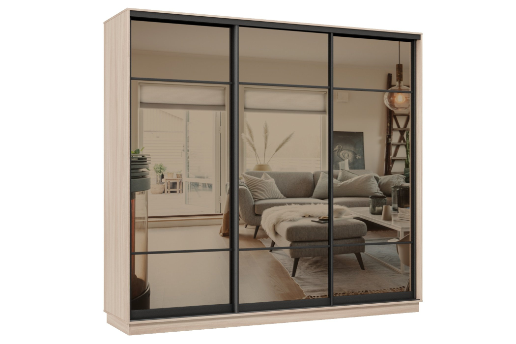 Отзывы о Столплит Шкаф-купе Премьер 60 (11ЗБ;11ЗБ;11ЗБ) фасады зеркало бронза/трёхдверный/Профиль чёрный муар Ясень шимо светлый