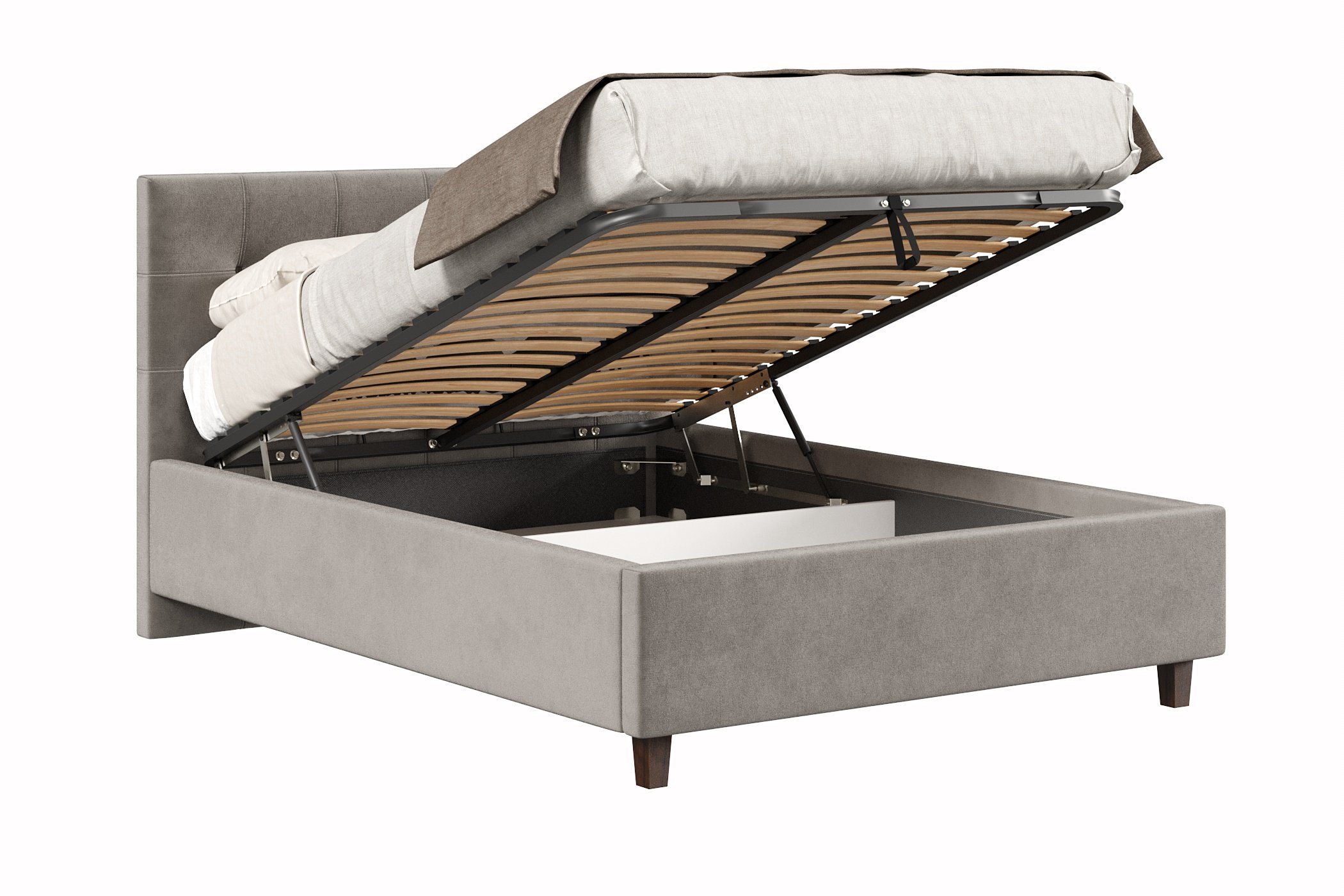 Кровать имеет нишу для хранения разных вещей, это очень удобно, если пространство в комнате не дает возможность поставить дополнительные шкафчики, либо полки.