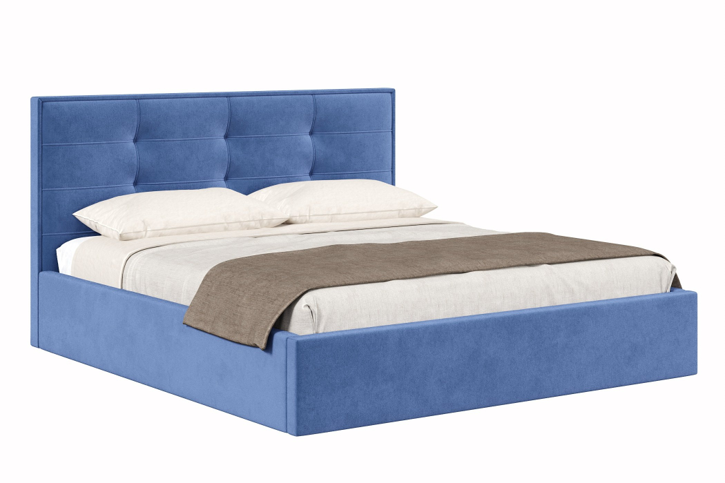 Кровать Римини 1800 с подъёмным механизмом, велюр (Синий)