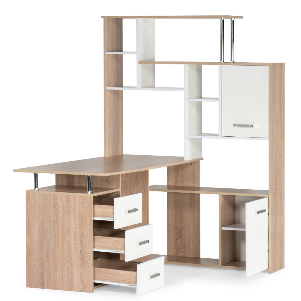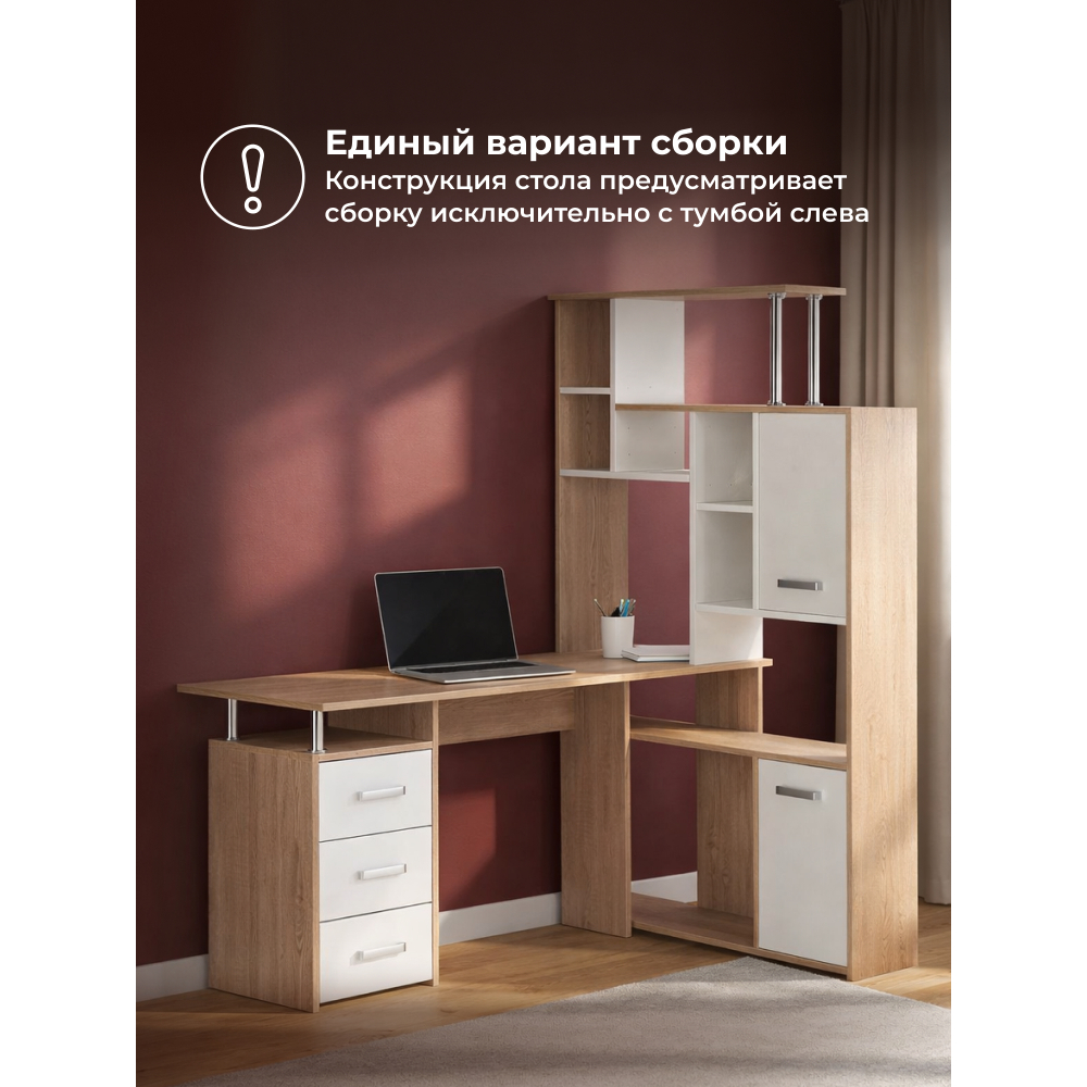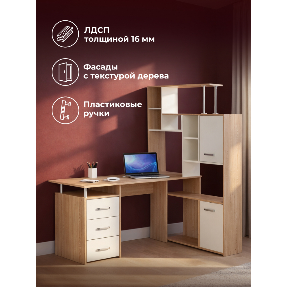 Стол КС15 правый дуб сонома; ЛДСП.Толщина ЛДСП - 16мм. Ящики полного выдвижения на роликовых направляющих. Вместительная конструкция для большого количества вещей. Большая рабочая поверхность