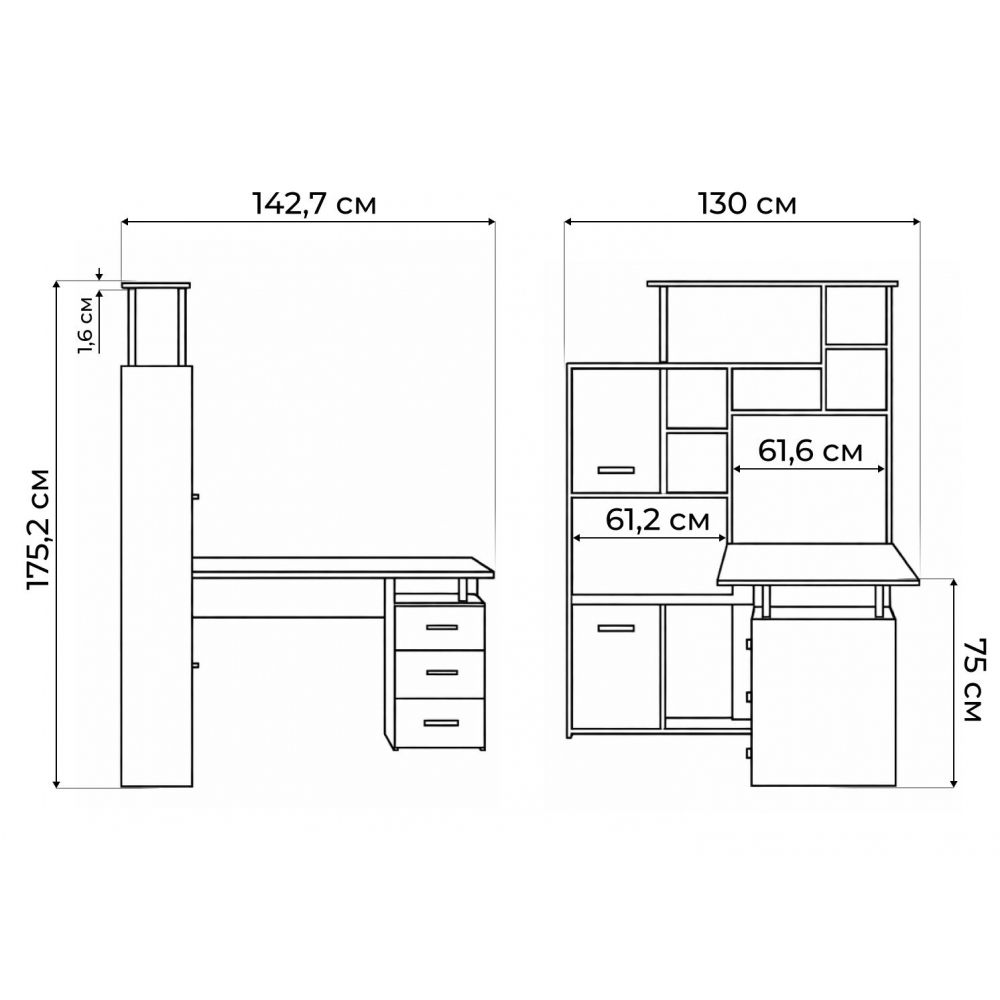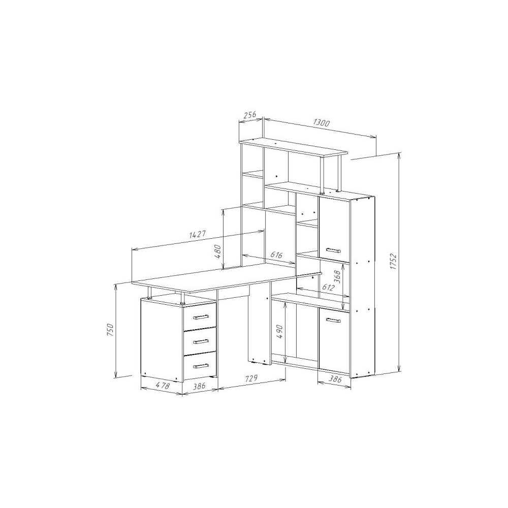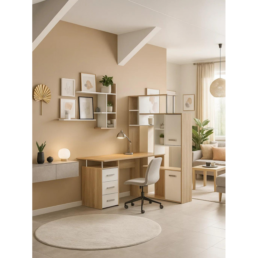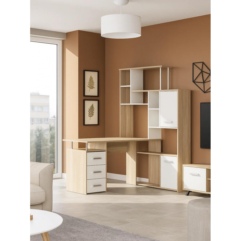 Стол КС15 правый дуб сонома; ЛДСП.Толщина ЛДСП - 16мм. Ящики полного выдвижения на роликовых направляющих. Вместительная конструкция для большого количества вещей. Большая рабочая поверхность