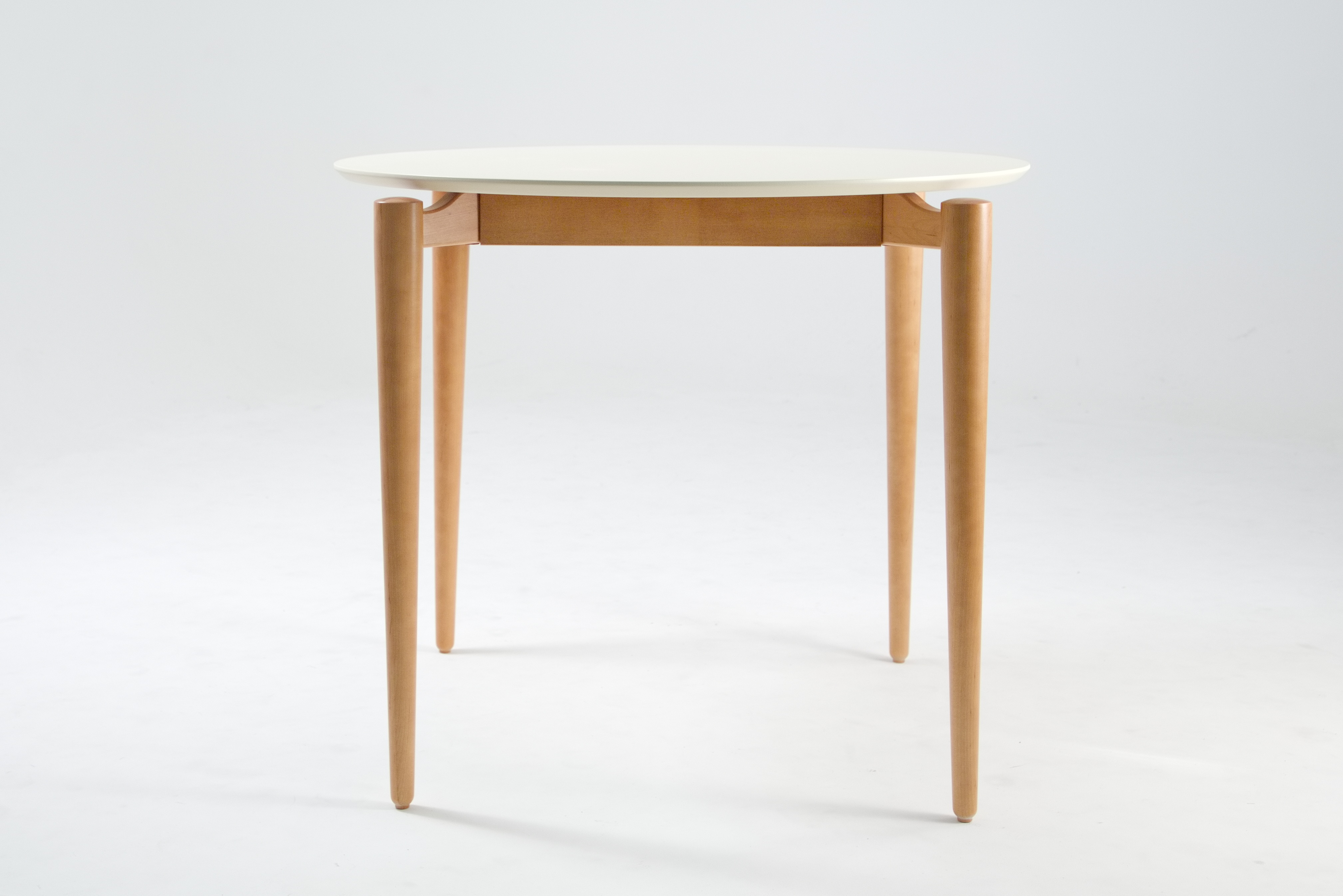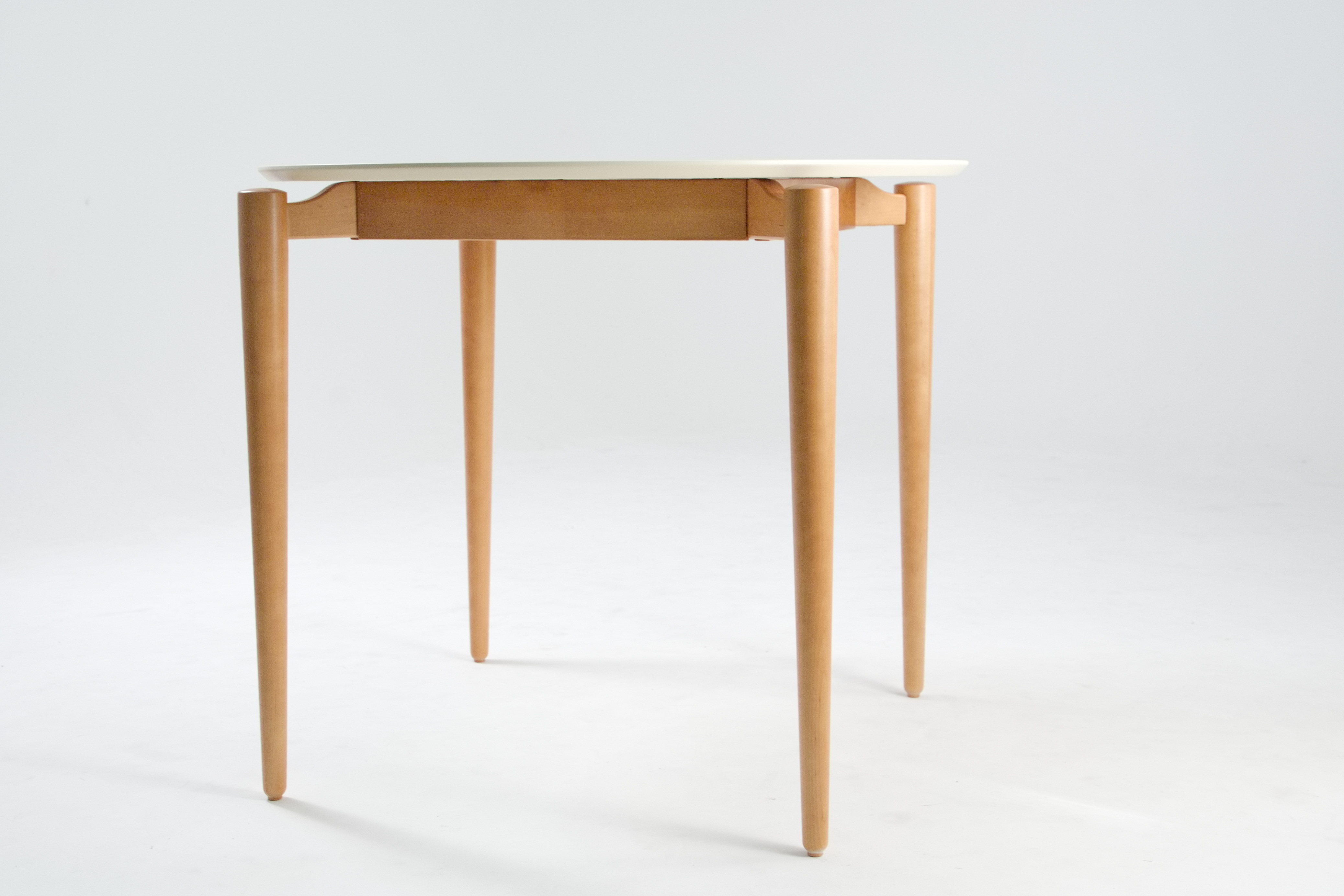Этот стол — настоящий шедевр минимализма. Его лаконичная форма и изысканное сочетание материалов покорят даже самых взыскательных ценителей дизайна. Белоснежная столешница с плавными линиями создаёт ощущение лёгкости и простора, а изящные деревянные ножки тёплого оттенка добавляют благородства и уюта.