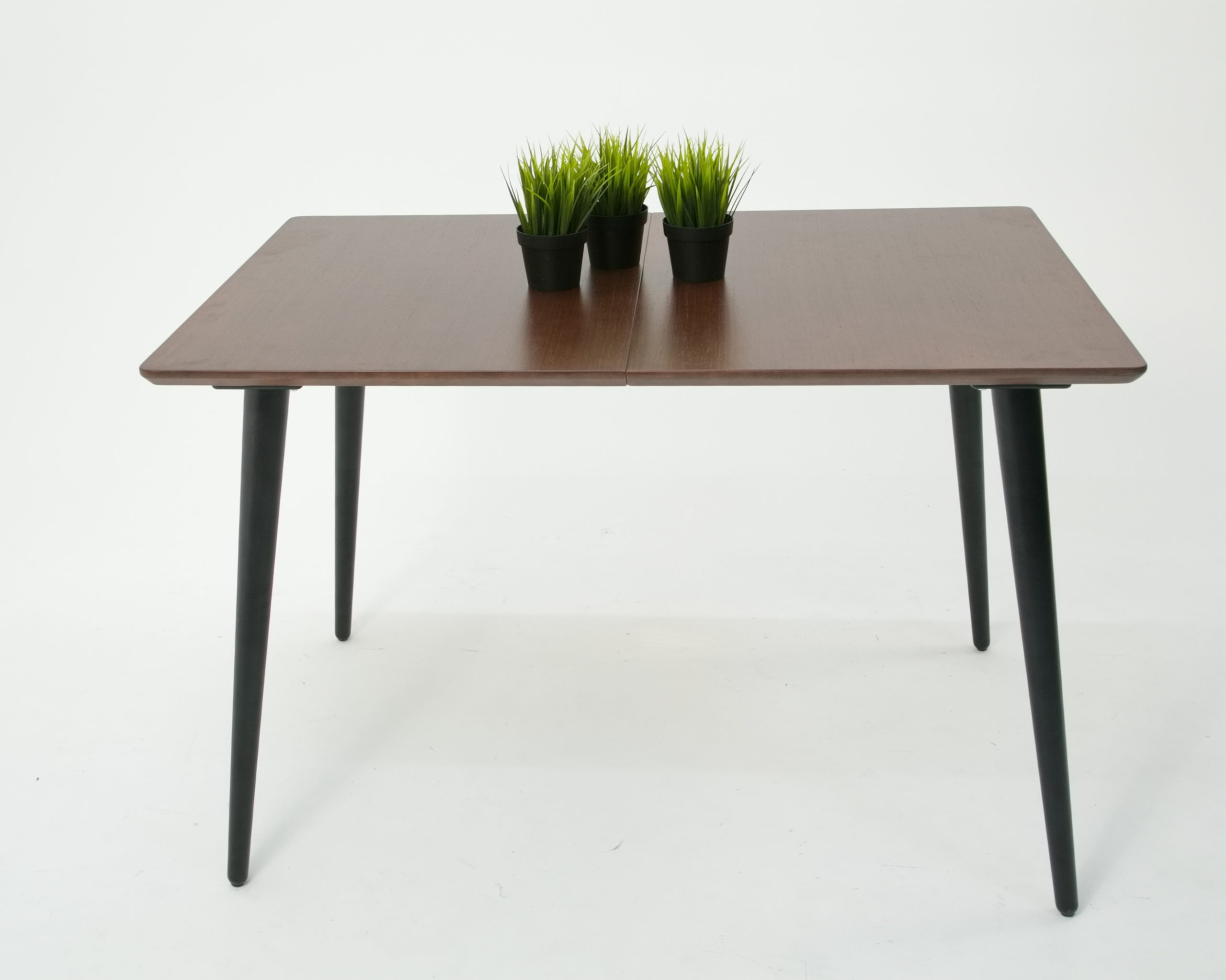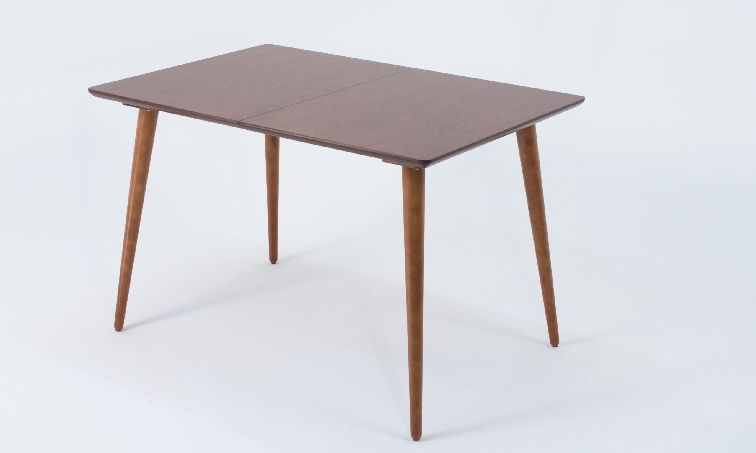 Стол необычный — у него нет несущей рамы и при этом стол раскладной — в разложенном состоянии (160 сантиметров) с комфортом разместит 8 человек (или 10, если посадка будет очень плотной).