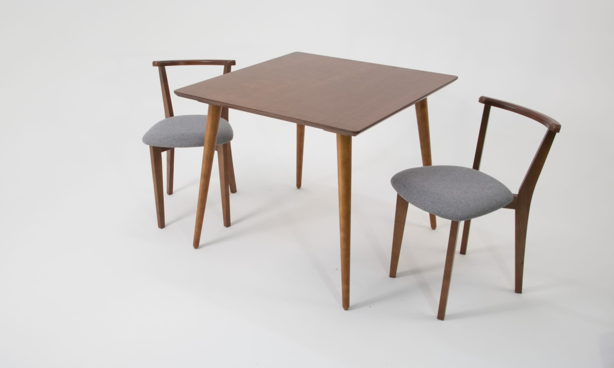 Опоры стола выполнены из натурального дерева высокой плотности — берёзы. В этой коллекции столешницы выпускаются в нескольких вариантах -МДФ со шпоном и натуральными оттенками, либо МДФ с покрытием эмалью (производство — Италия).