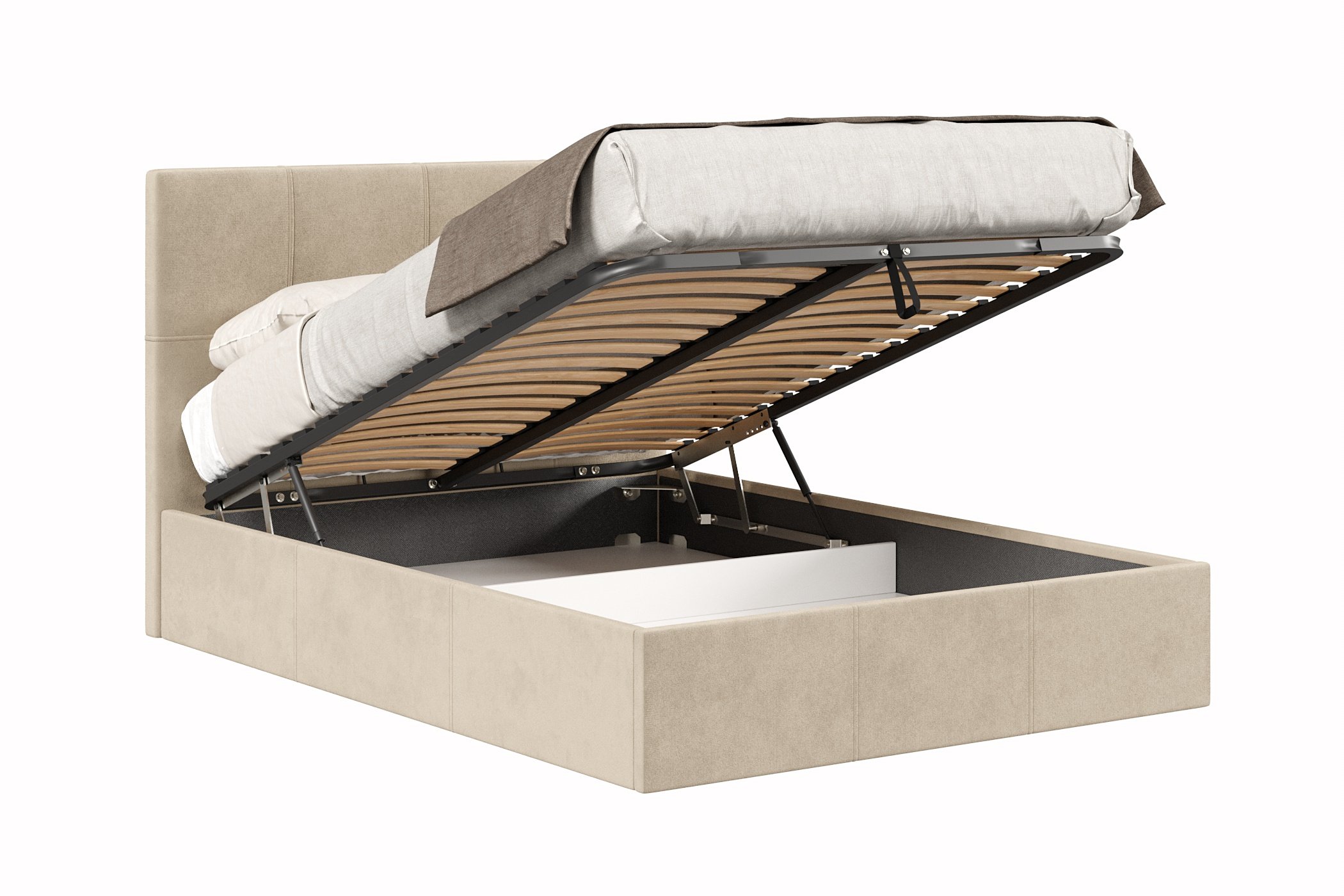 Кровать имеет нишу для хранения разных вещей, это очень удобно, если пространство в комнате не дает возможность поставить дополнительные шкафчики, либо полки.