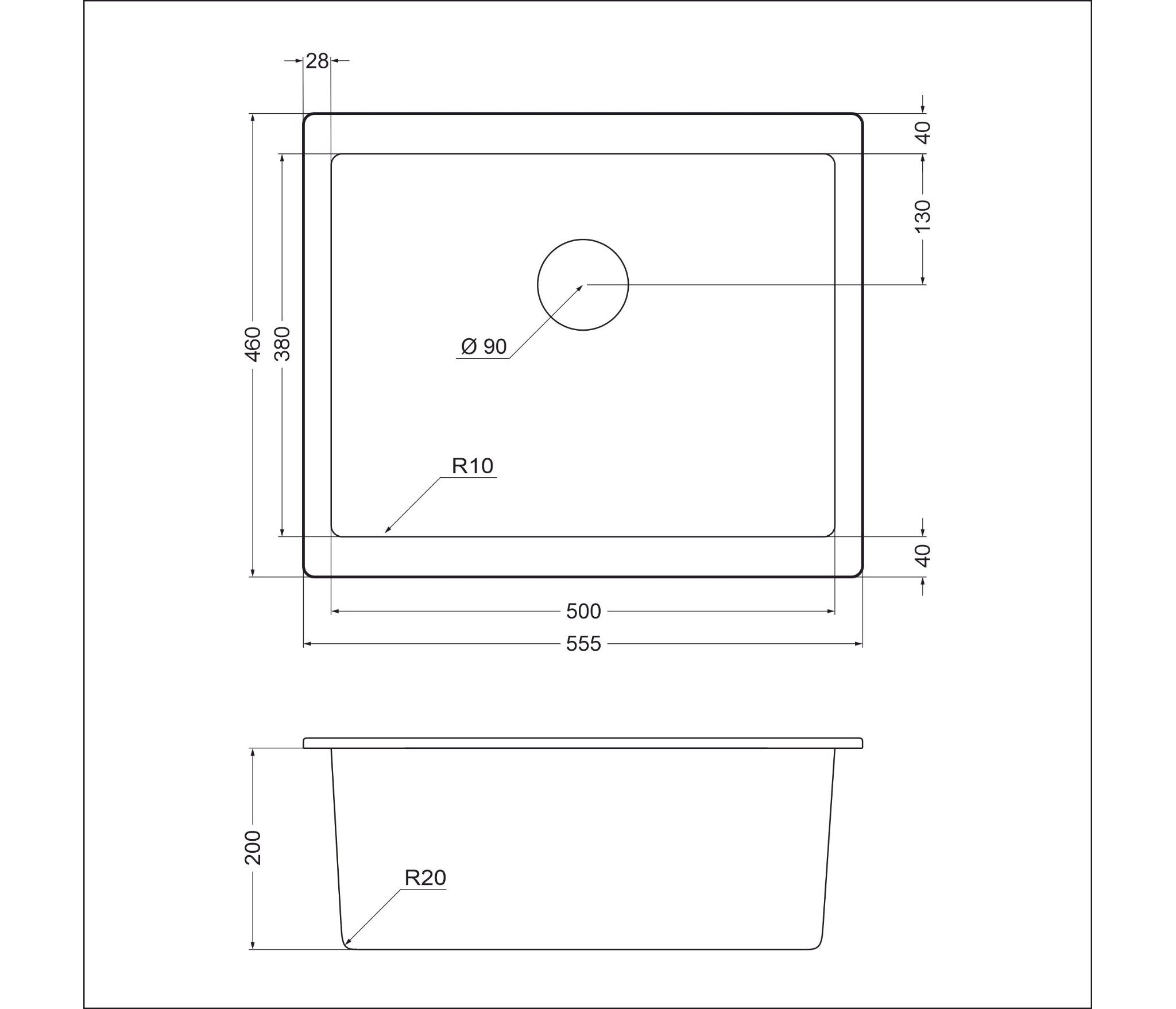 • Размеры мойки: 460 x 555 х 200мм