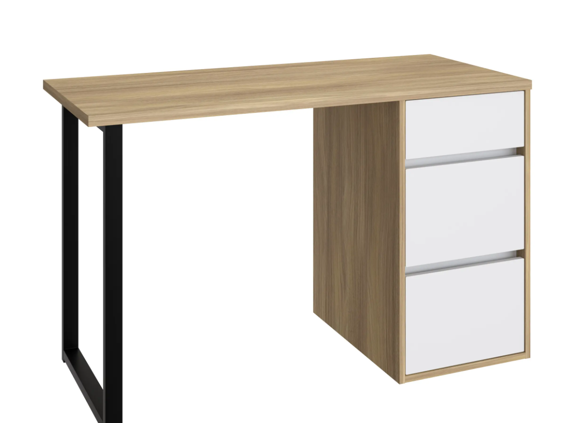 Стол письменный С-401 позволит создать комфортное и стильное рабочее пространство в офисе или домашнем кабинете. Стол С-401 можно использовать в качестве маникюрного стола. Стол имеет прочную стальную опору и тумбу с тремя выдвижными ящиками. Столешница изготовлена из ЛДСП 25 мм. Стол может быть собран в зеркальном варианте «правым» или «левым». Фурнитура: телескопический направляющие полного выдвижения без доводчиков, опора металл.