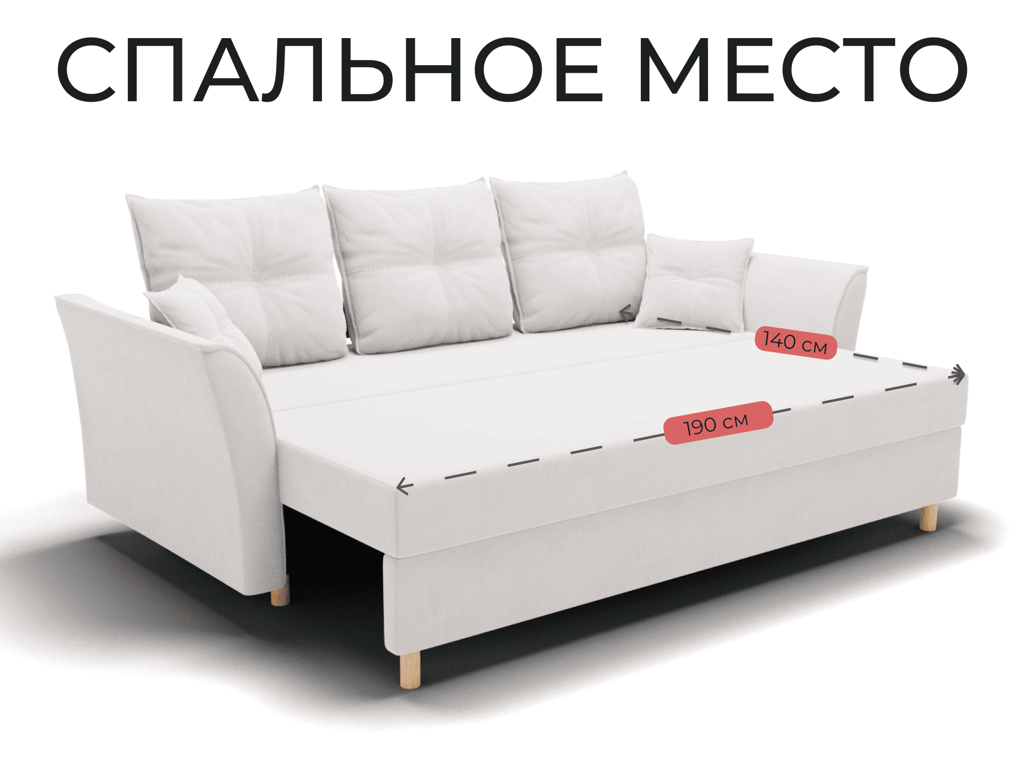 Спальное место: ширина - 140 см, длина - 190 см. Максимальная нагрузка - 250 кг.