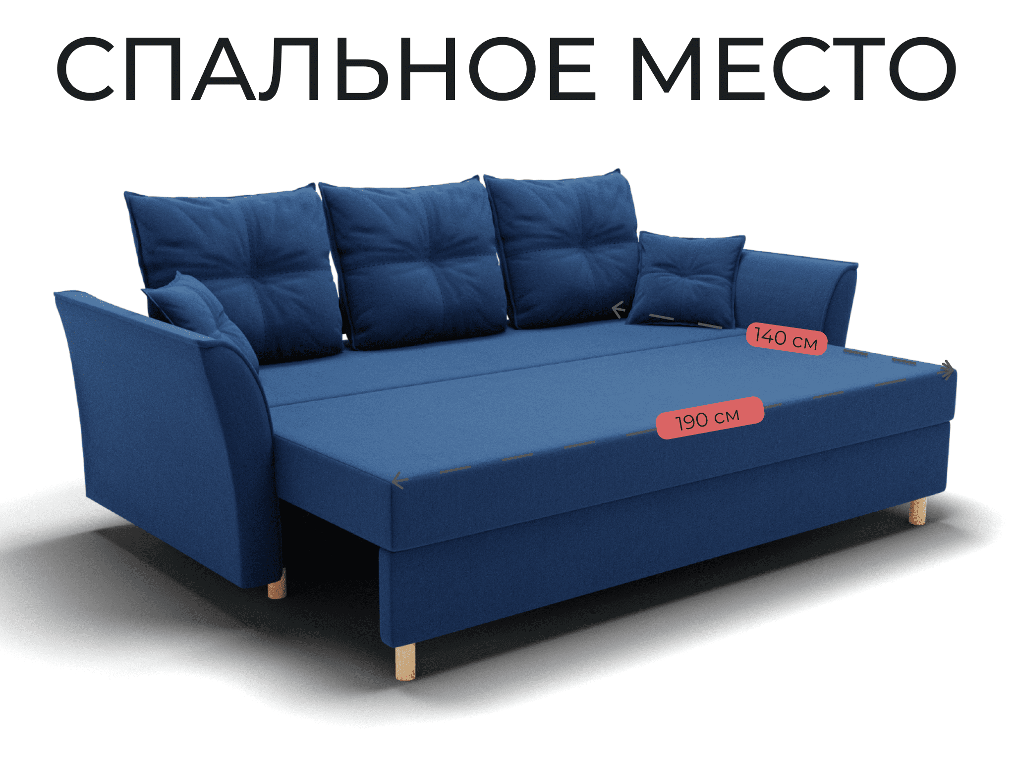 Спальное место: ширина - 140 см, длина - 190 см. Максимальная нагрузка - 250 кг.