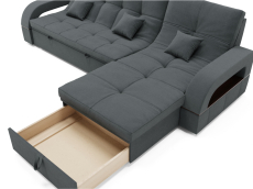 Он имеет высоту 97 см, ширину 268 см и глубину 175 см. Диван обладает универсальным расположением угла, что позволяет его использовать в любом помещении.